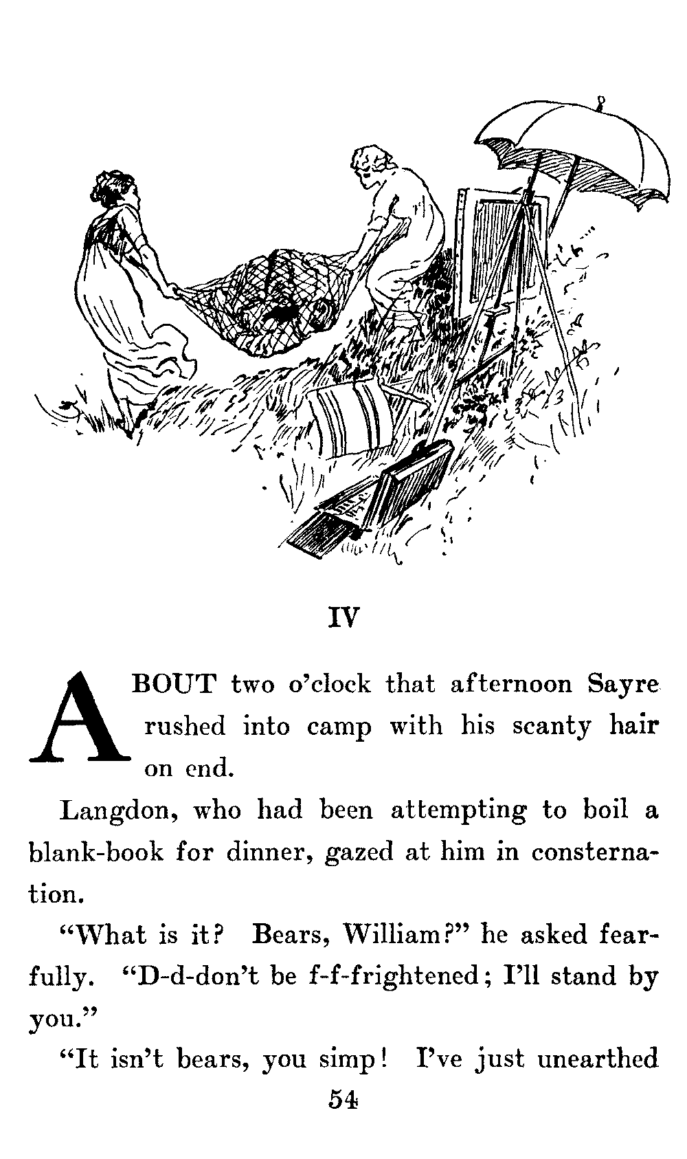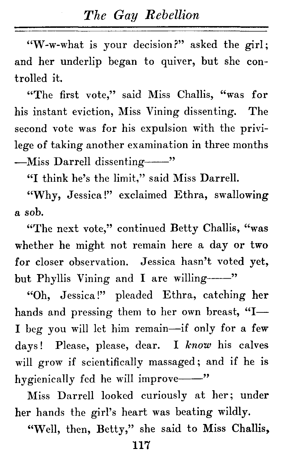 [5] "Mr. Trinkle," he began more complacently, "what I want you to always bear in mind is that my pup nephews require a thorough grilling! I want you to bully 'em! Suppress 'em! Squelch, nag, worry, sit on 'em!"