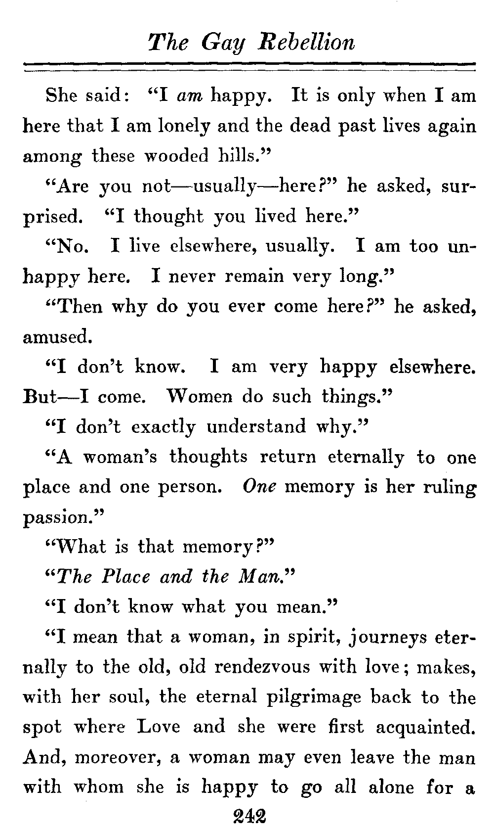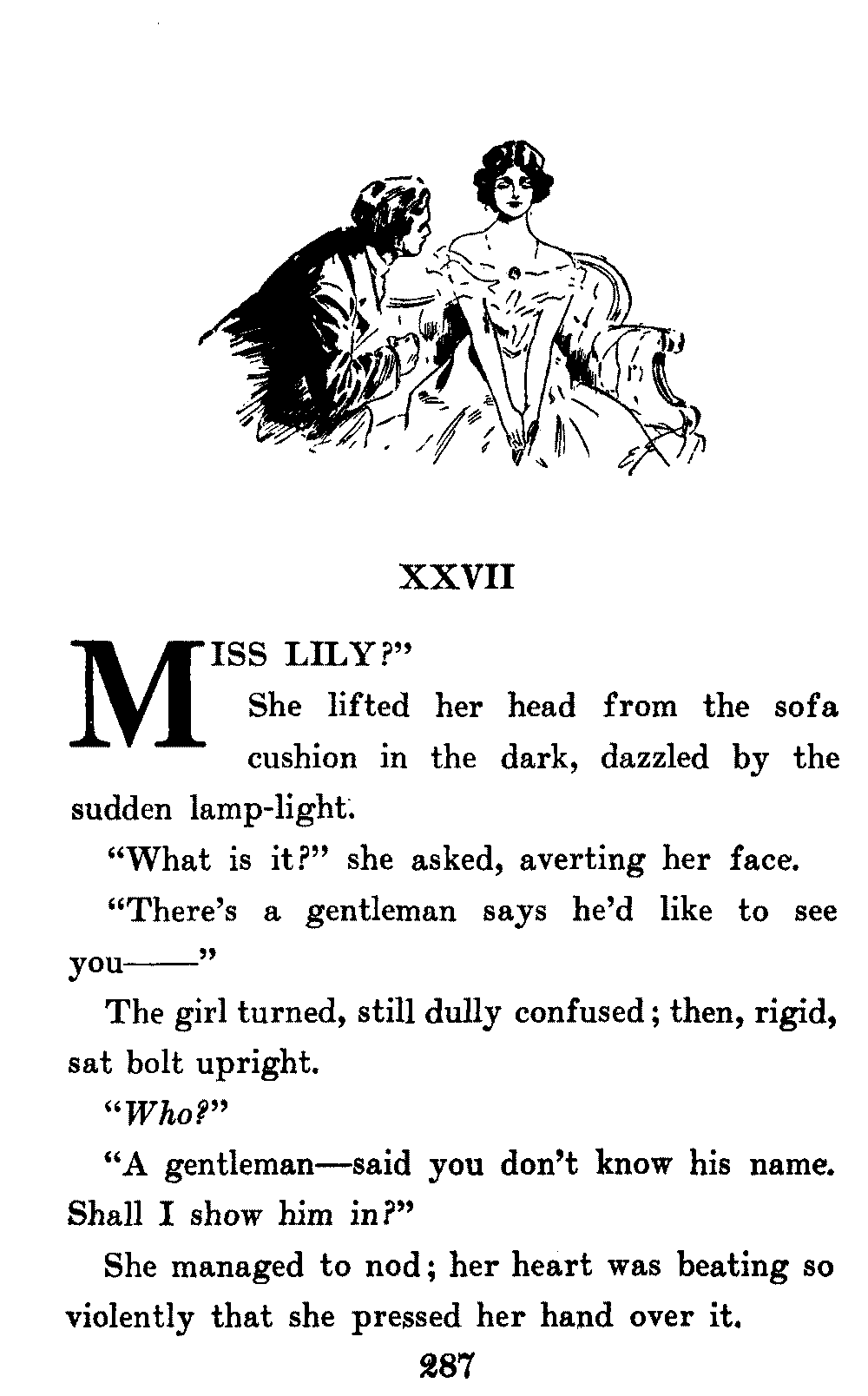 Then it seemed as though something sealed her lips, and that nothing could ever again unseal them. All that she had to say to him vanished from her mind; she could not recall a single phrase[289] she had prepared to lead up to all she must somehow say to him.