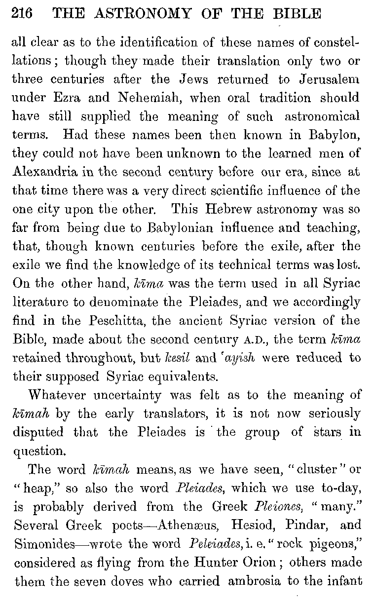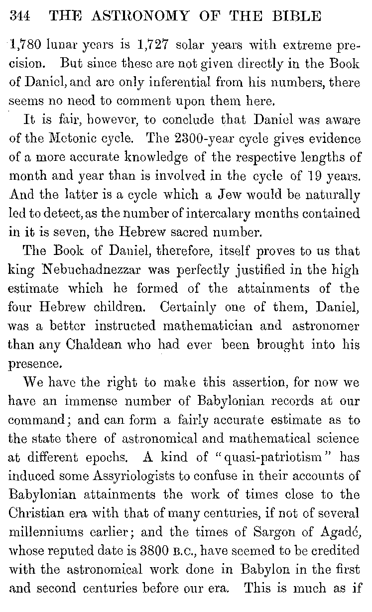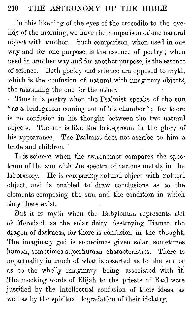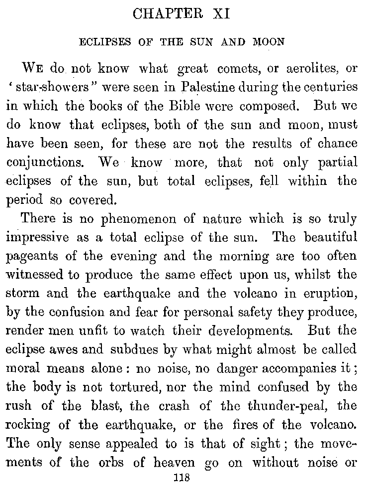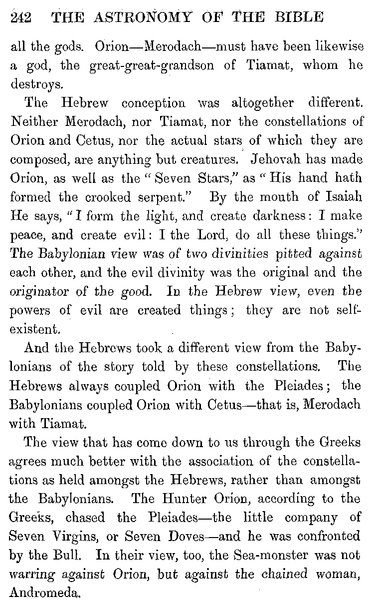 Astronomy has a yet further part to play in Biblical study. The dating of the several books of the Bible, and the relation of certain heathen mythologies to the Scripture narratives of the world's earliest ages, have received much attention of late years. Literary analysis has thrown much light on these subjects, but hitherto any evidence that astronomy could give has been almost wholly neglected; although, from the nature of the case, such evidence, so far as it is available, must be most decisive and exact.