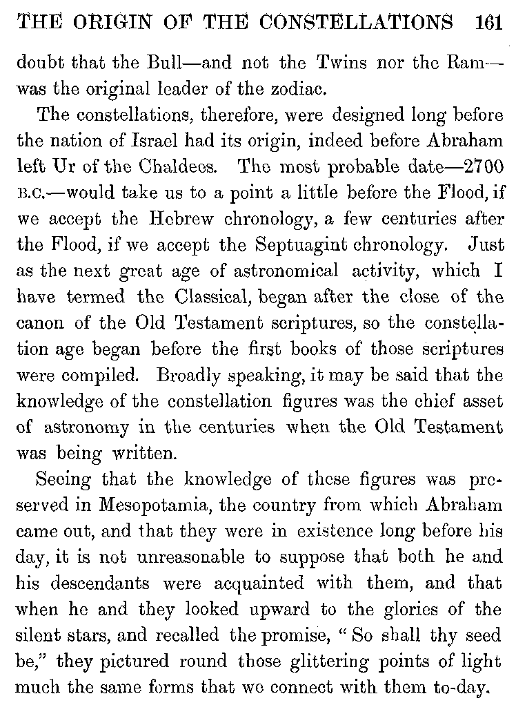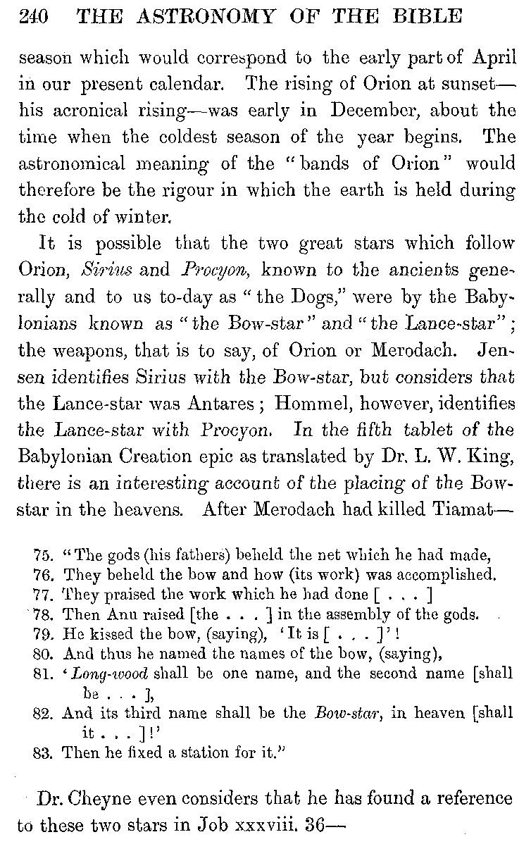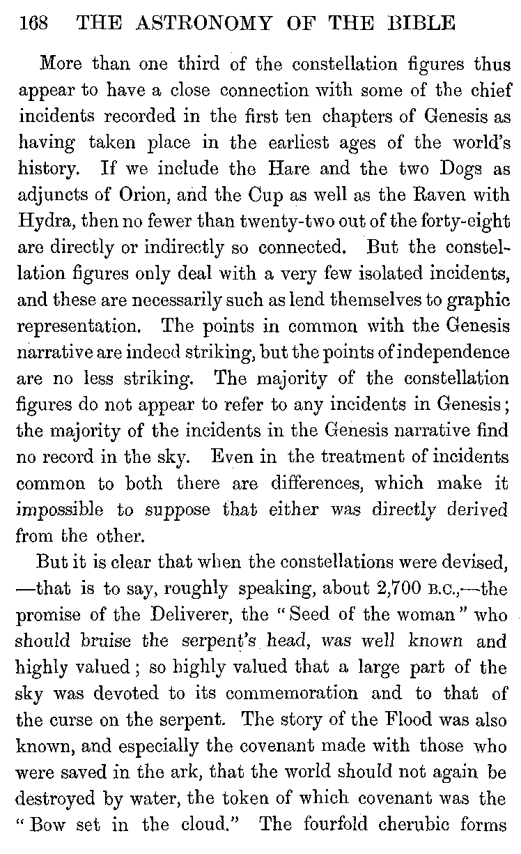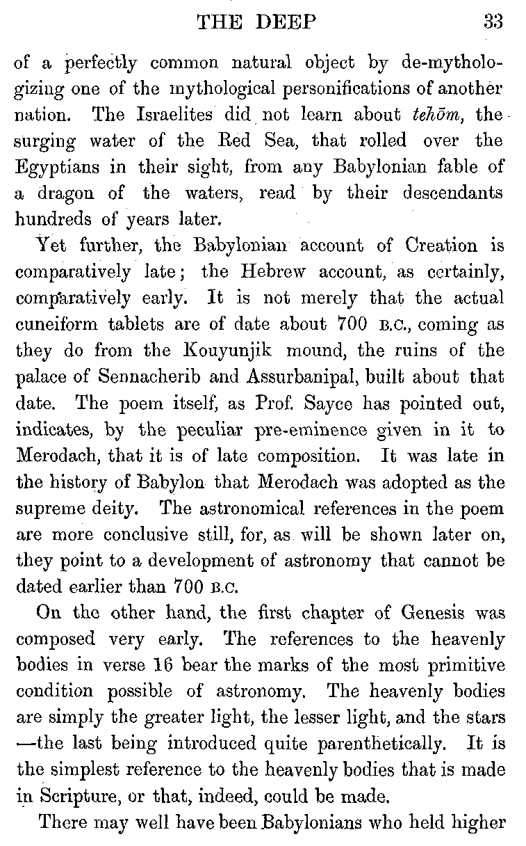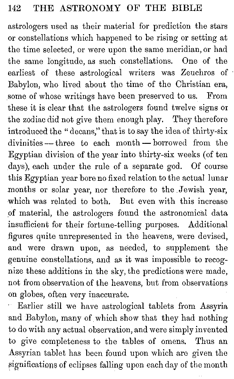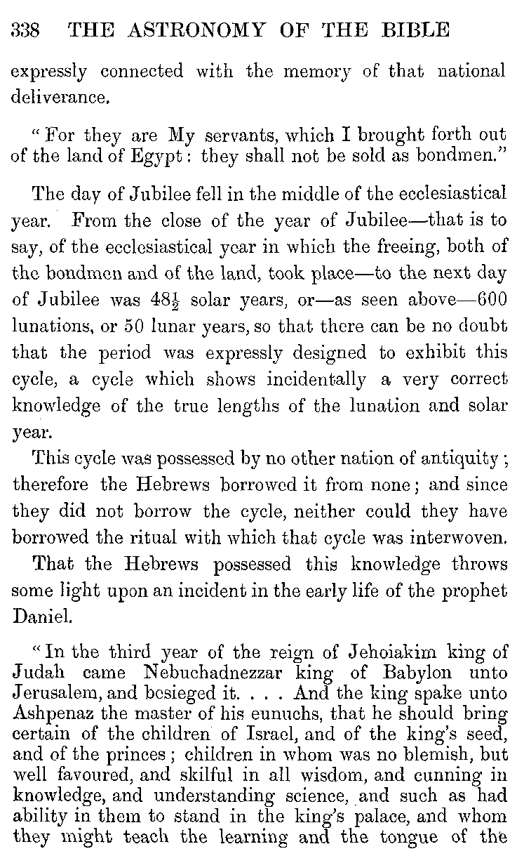Astronomy has a yet further part to play in Biblical study. The dating of the several books of the Bible, and the relation of certain heathen mythologies to the Scripture narratives of the world's earliest ages, have received much attention of late years. Literary analysis has thrown much light on these subjects, but hitherto any evidence that astronomy could give has been almost wholly neglected; although, from the nature of the case, such evidence, so far as it is available, must be most decisive and exact.