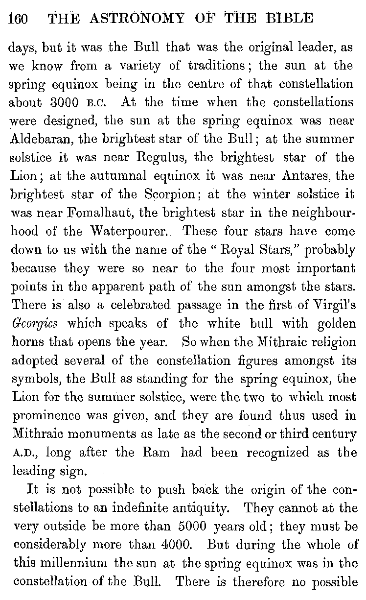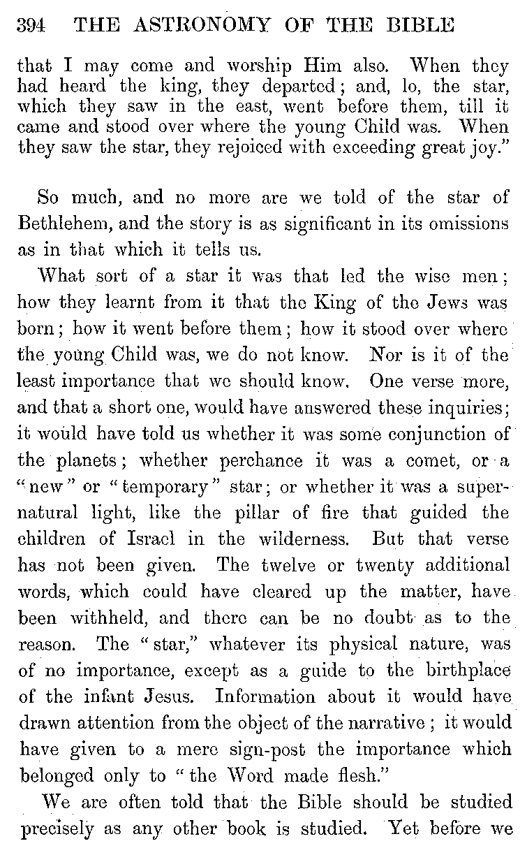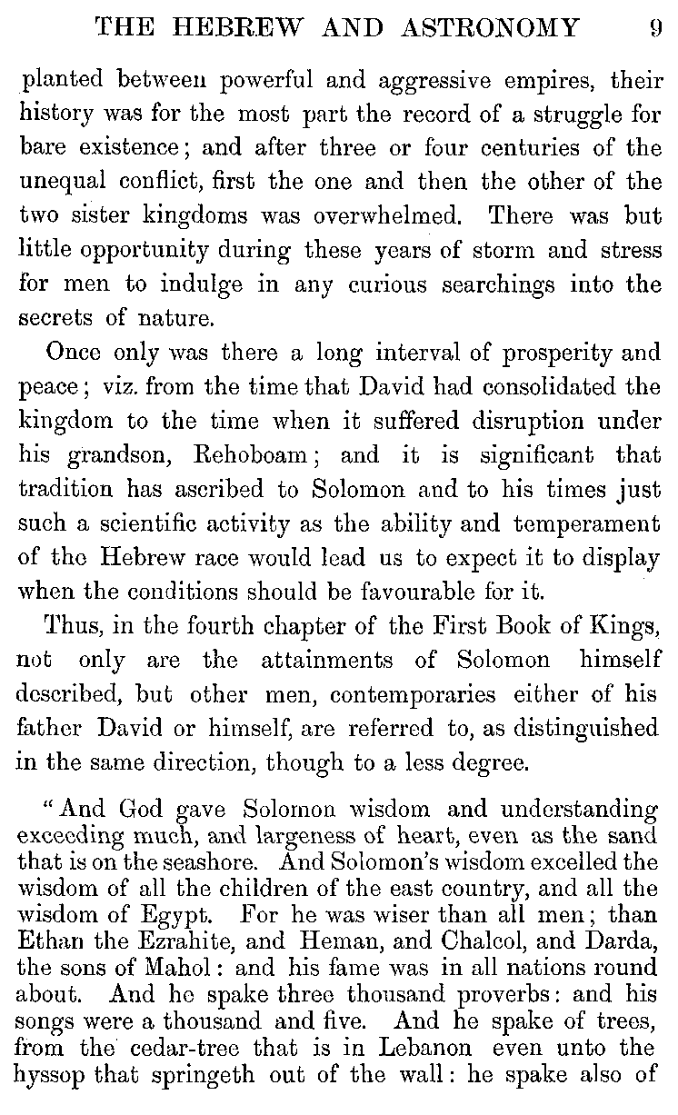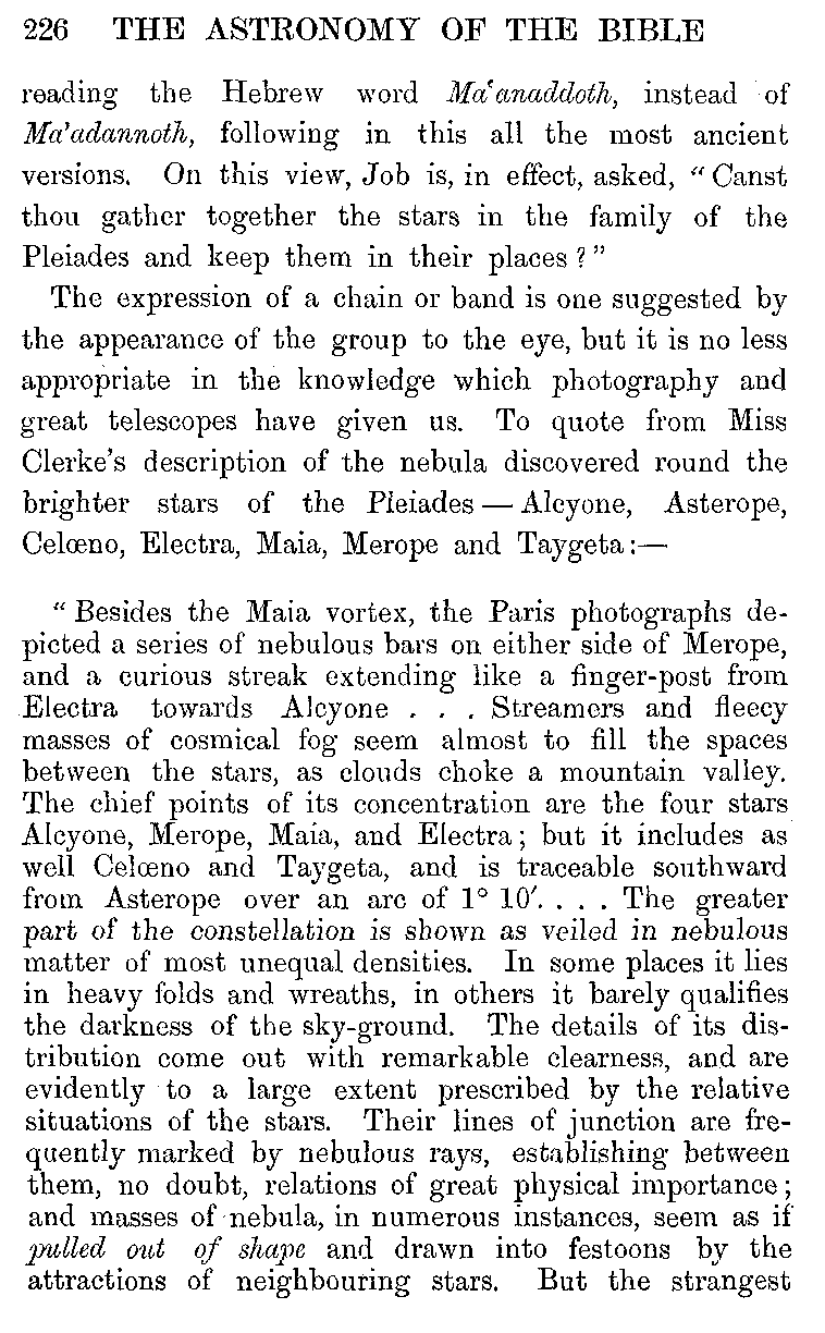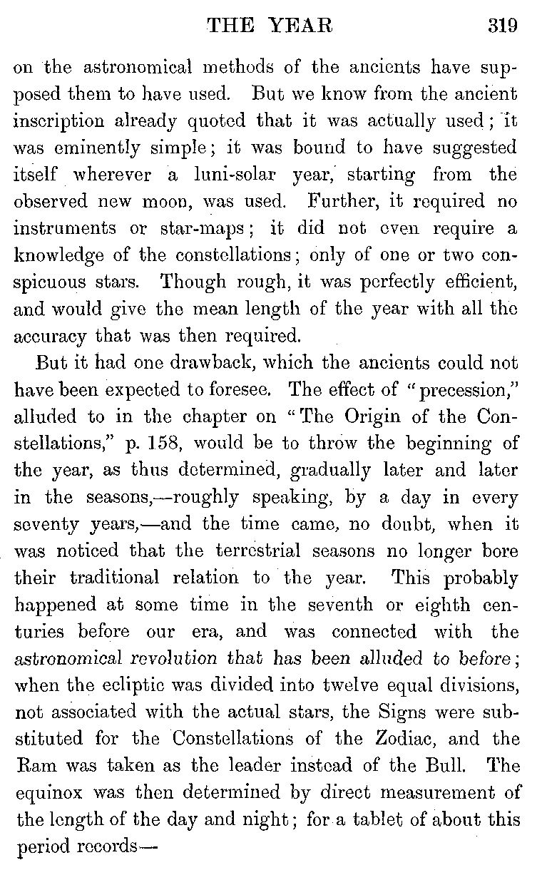 Astronomy has a yet further part to play in Biblical study. The dating of the several books of the Bible, and the relation of certain heathen mythologies to the Scripture narratives of the world's earliest ages, have received much attention of late years. Literary analysis has thrown much light on these subjects, but hitherto any evidence that astronomy could give has been almost wholly neglected; although, from the nature of the case, such evidence, so far as it is available, must be most decisive and exact.