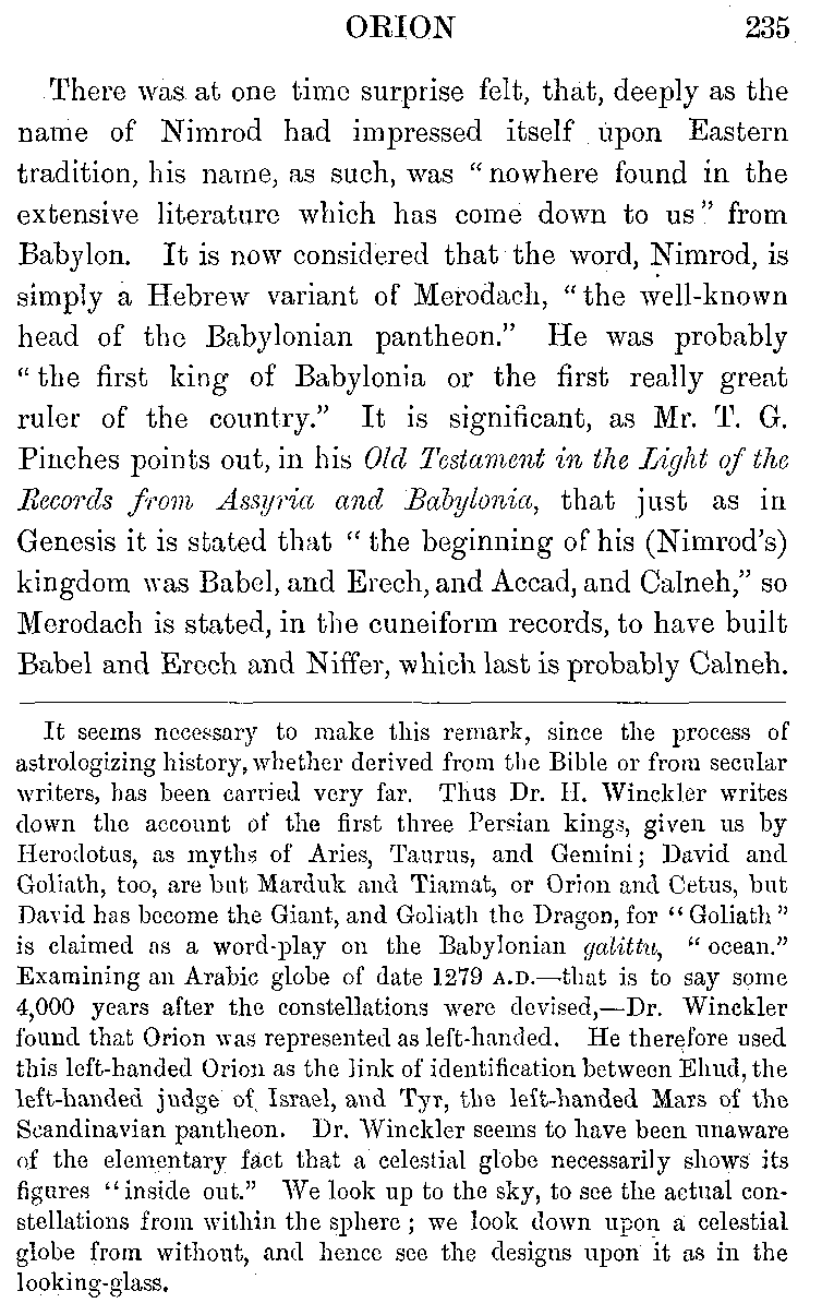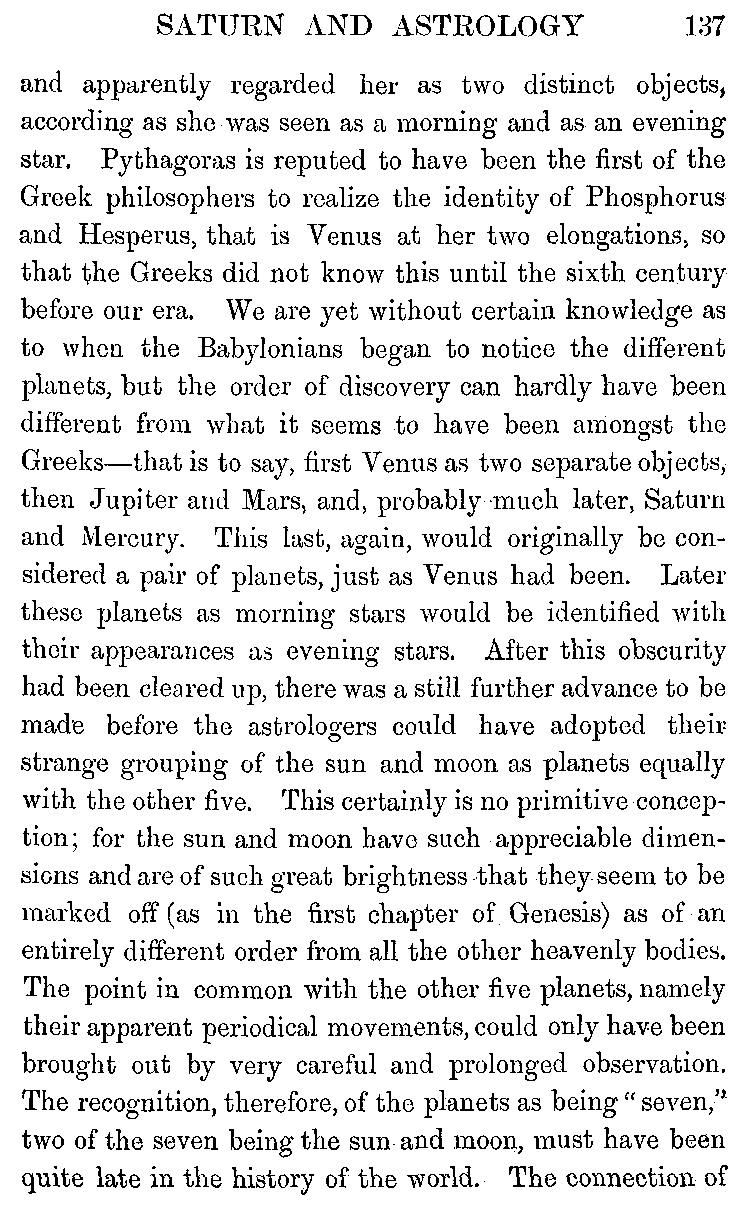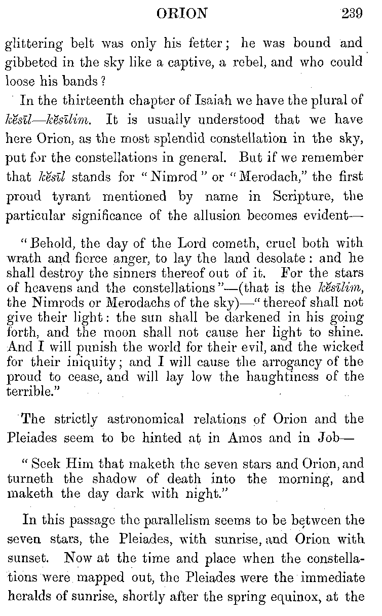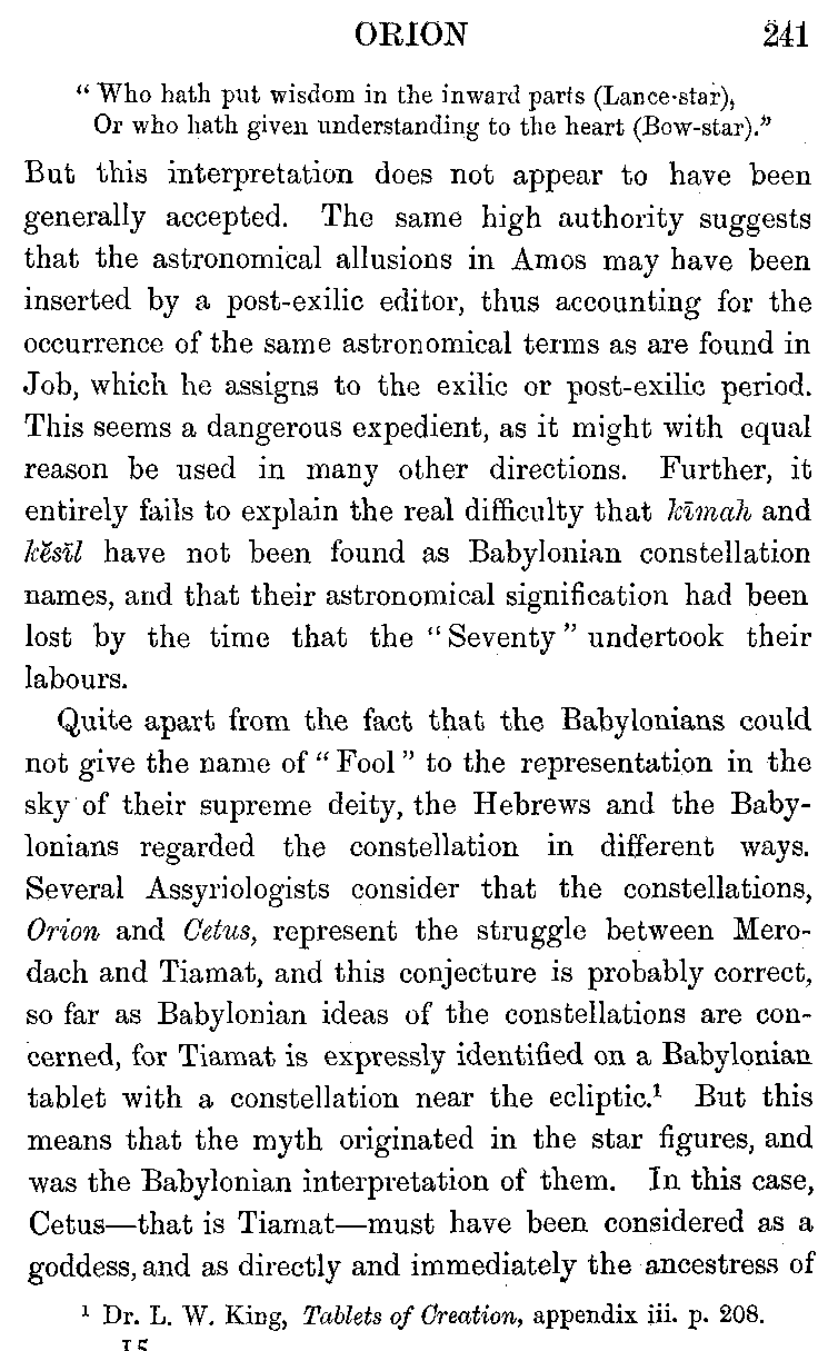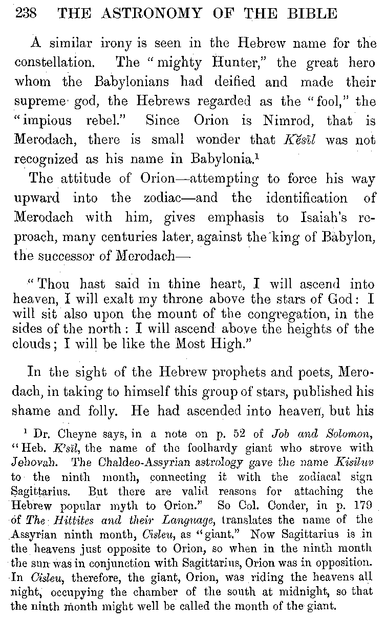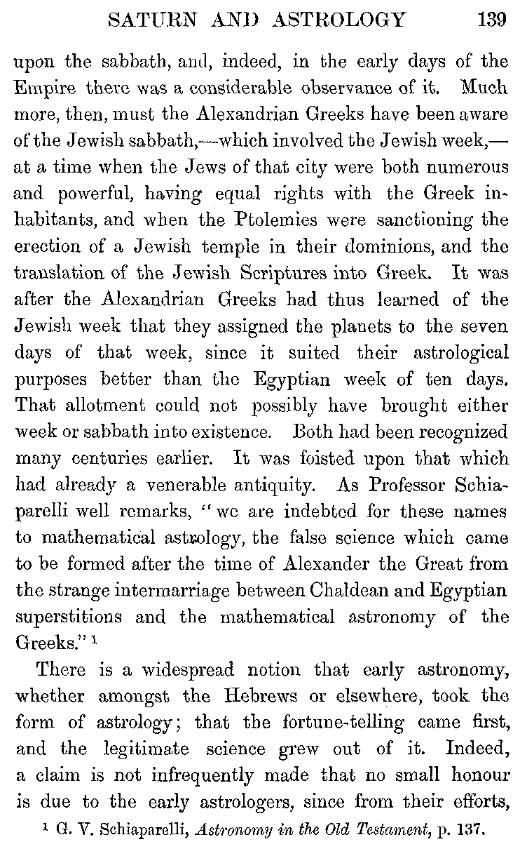Astronomy has a yet further part to play in Biblical study. The dating of the several books of the Bible, and the relation of certain heathen mythologies to the Scripture narratives of the world's earliest ages, have received much attention of late years. Literary analysis has thrown much light on these subjects, but hitherto any evidence that astronomy could give has been almost wholly neglected; although, from the nature of the case, such evidence, so far as it is available, must be most decisive and exact.