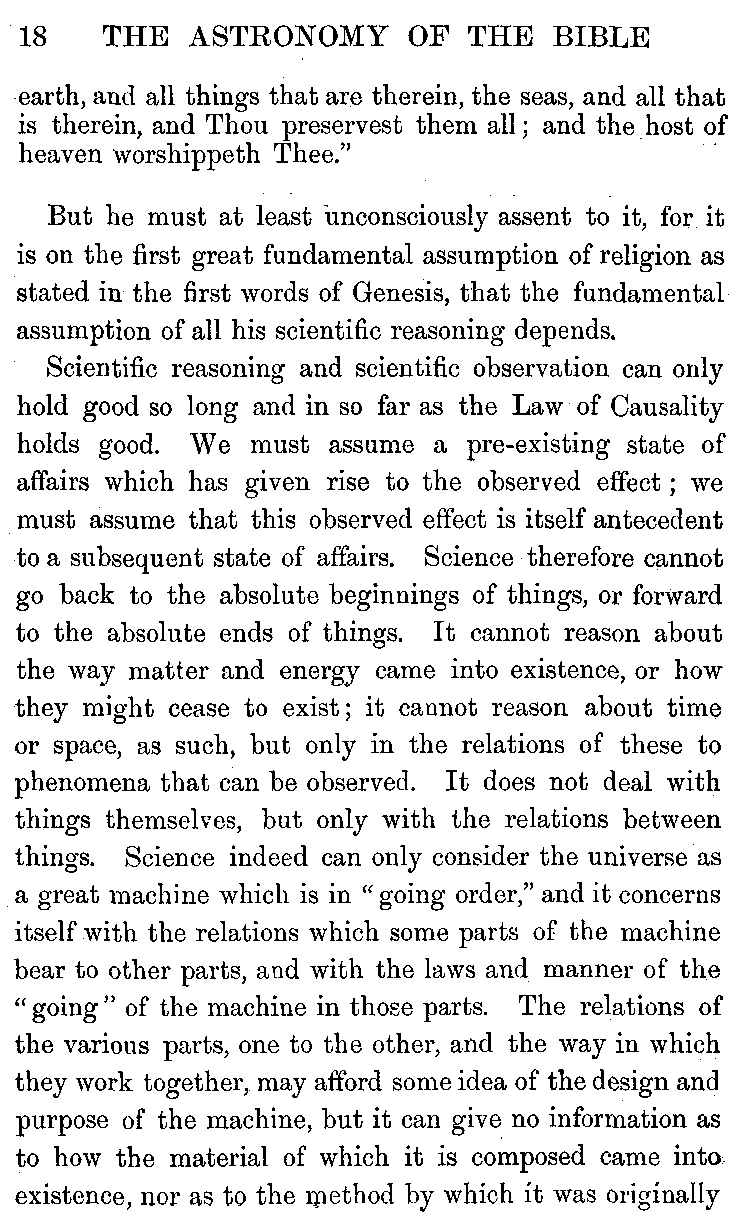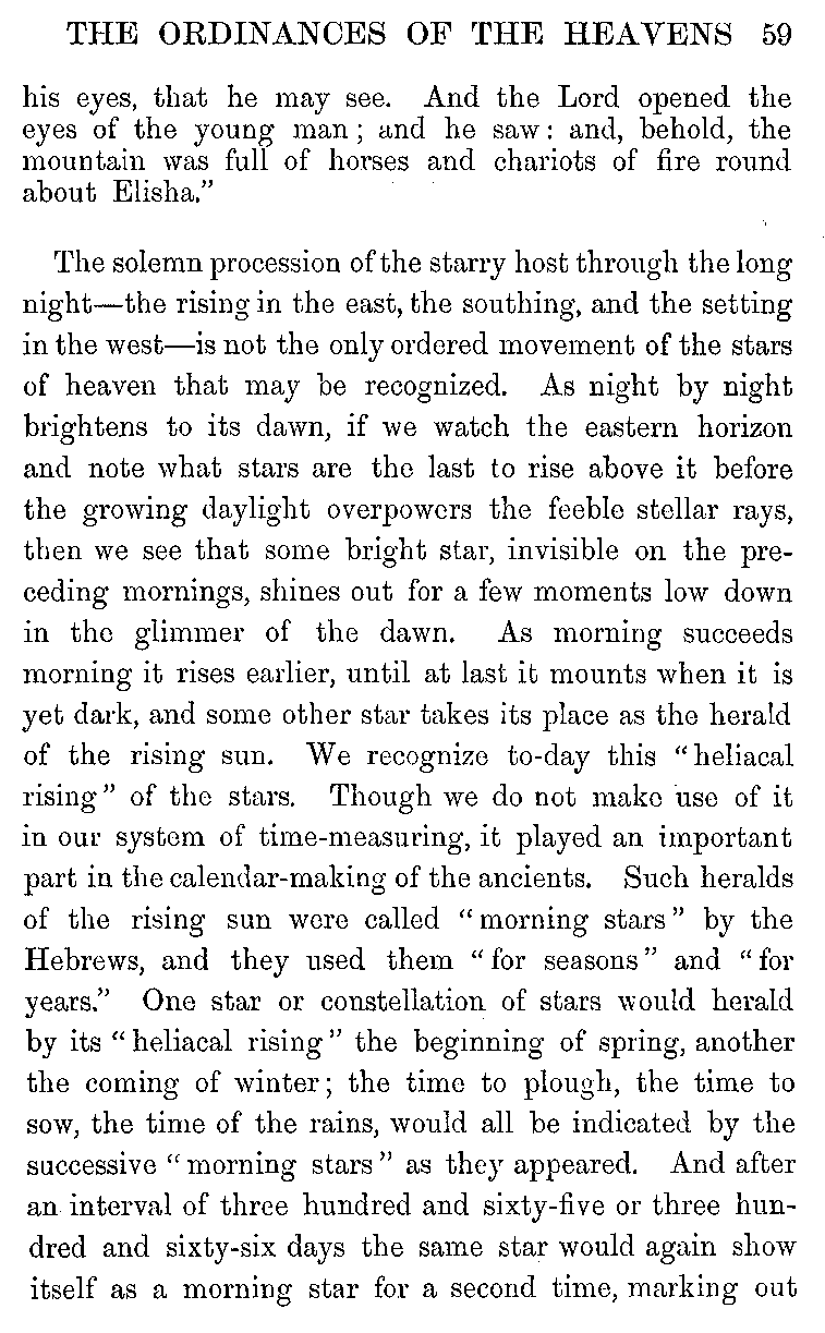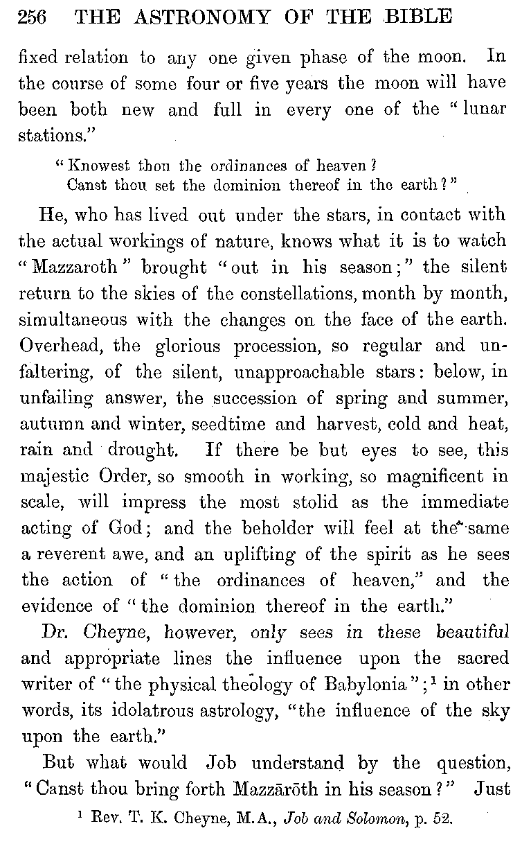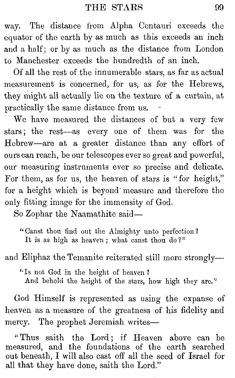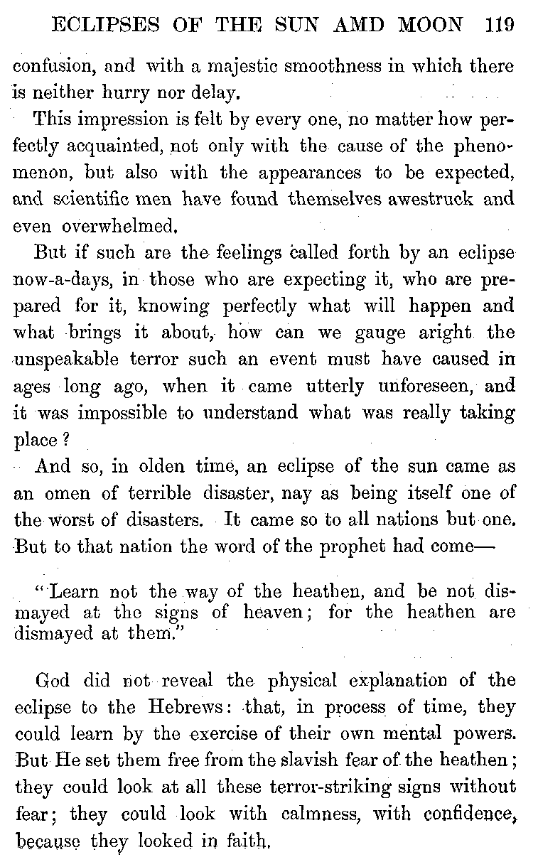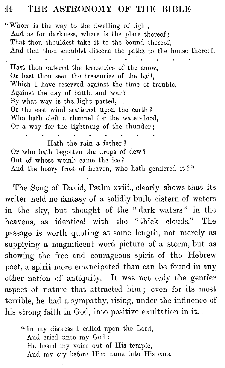 It is worth while for us so to do. For the immense advances in science, made since the Canon of Holy Scripture was closed, and especially during the last three hundred years, may enable us to realize the significance of a most remarkable fact. Even in those early ages, [viii]when to all the nations surrounding Israel the heavenly bodies were objects for divination or idolatry, the attitude of the sacred writers toward them was perfect in its sanity and truth.