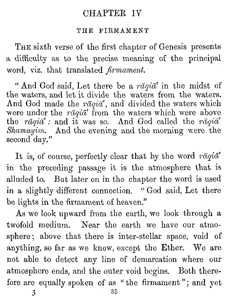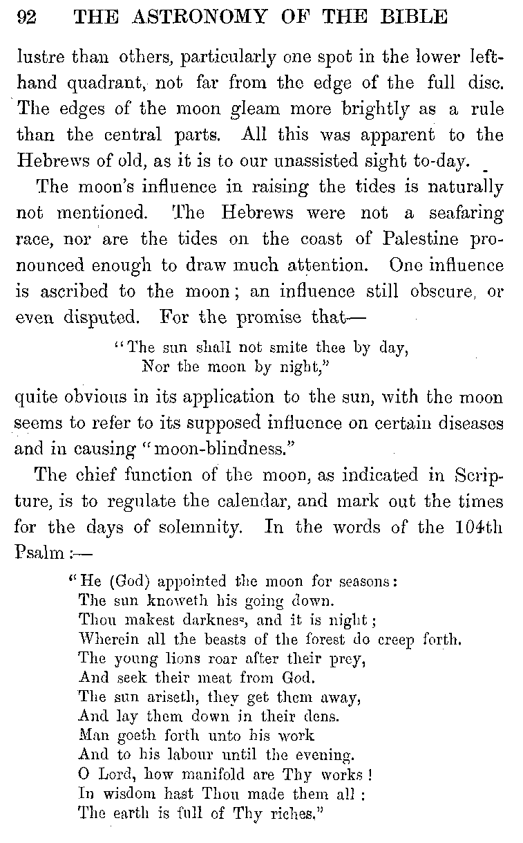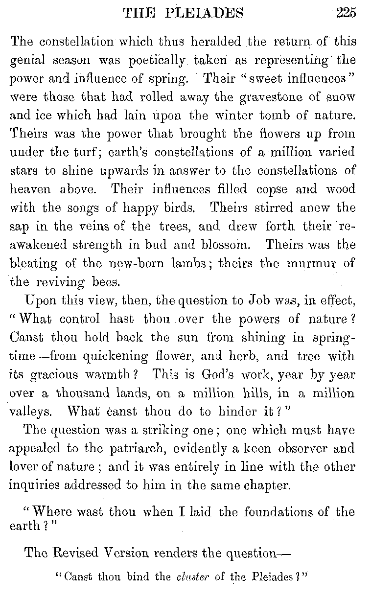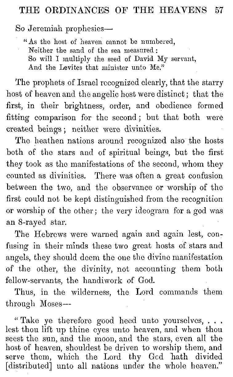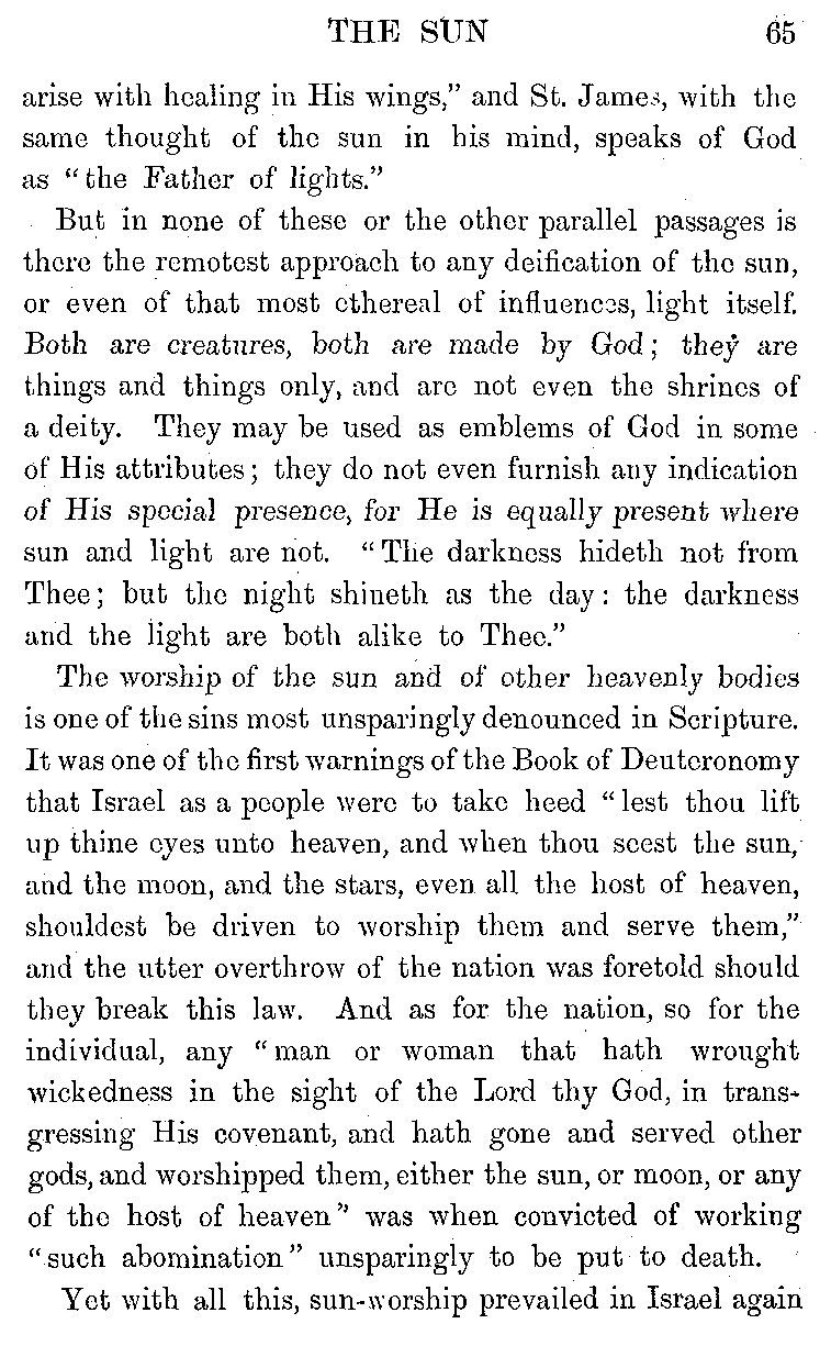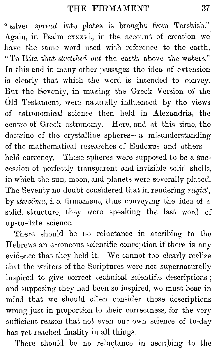 It is worth while for us so to do. For the immense advances in science, made since the Canon of Holy Scripture was closed, and especially during the last three hundred years, may enable us to realize the significance of a most remarkable fact. Even in those early ages, [viii]when to all the nations surrounding Israel the heavenly bodies were objects for divination or idolatry, the attitude of the sacred writers toward them was perfect in its sanity and truth.