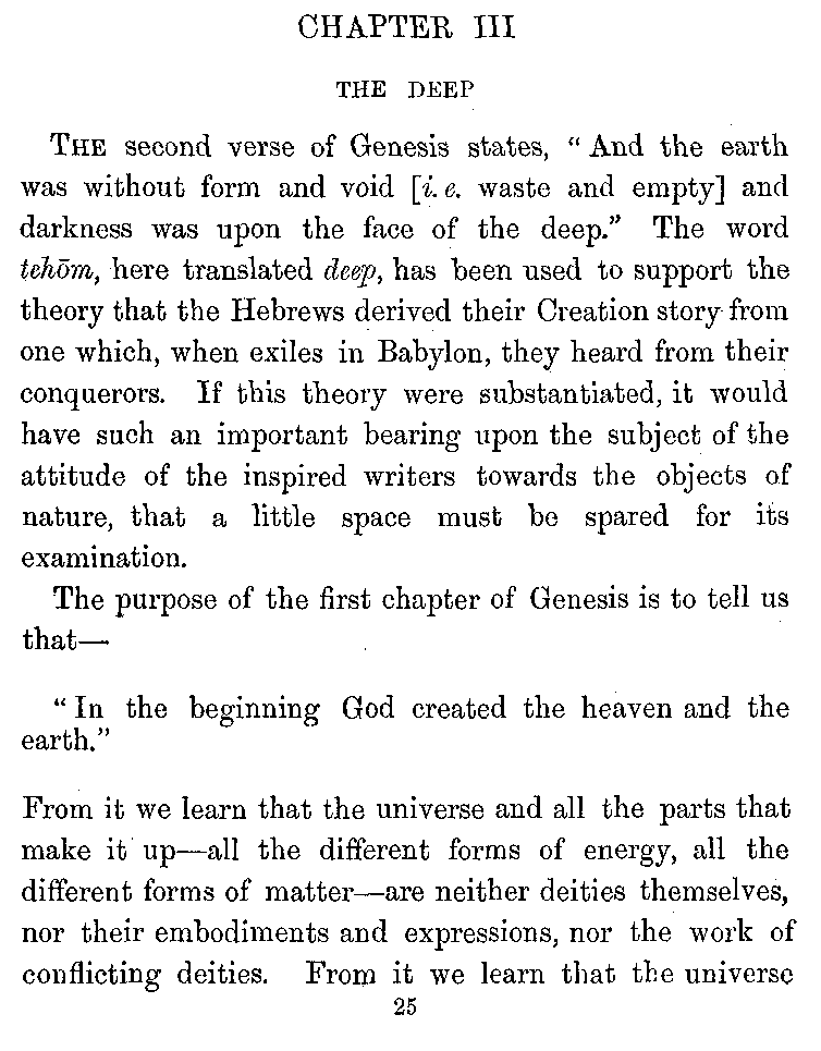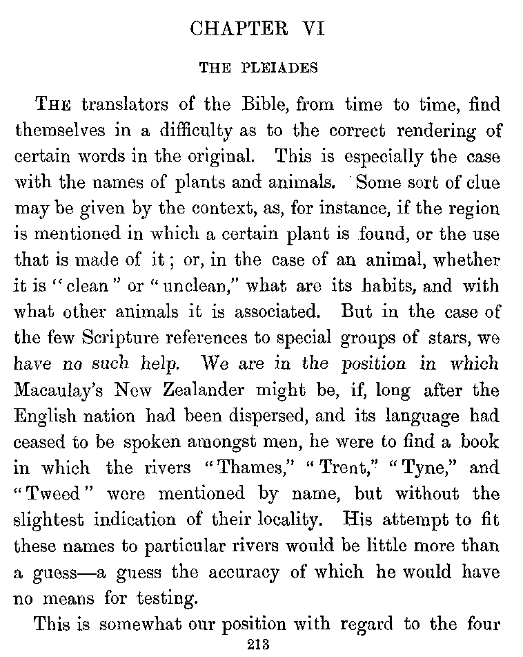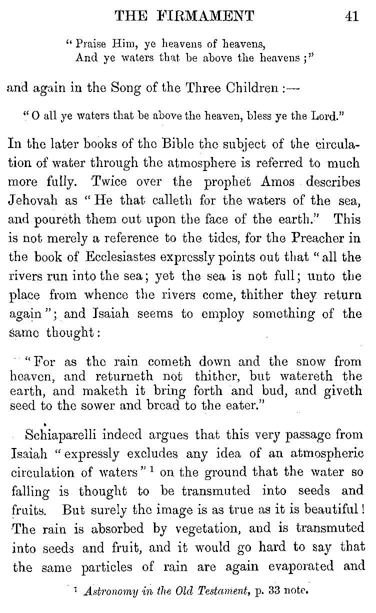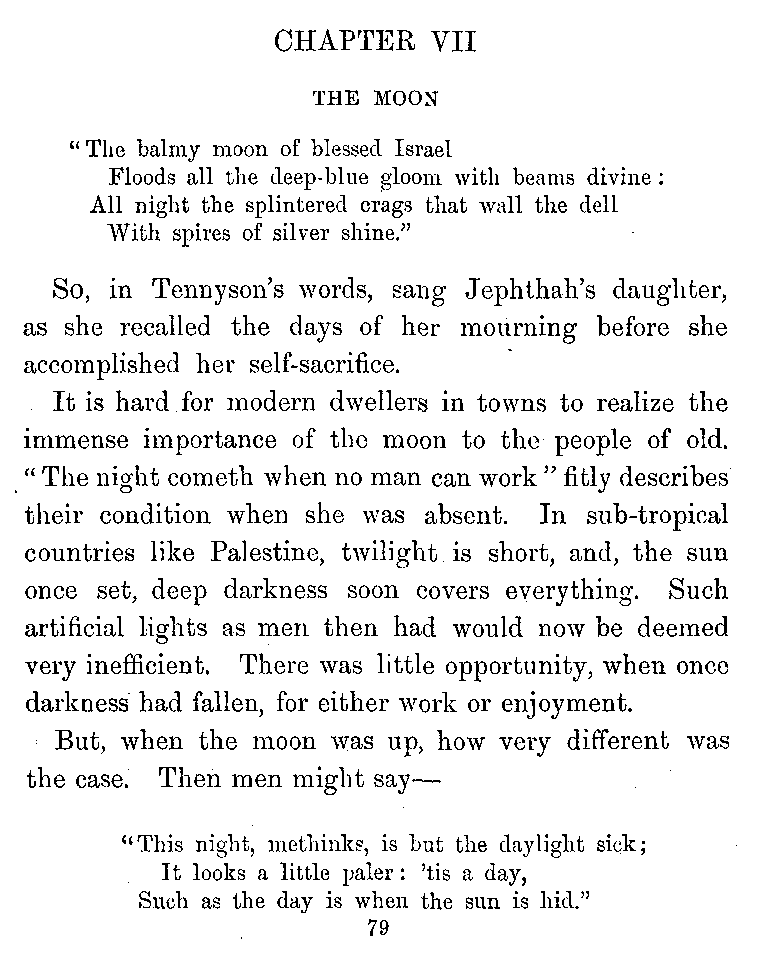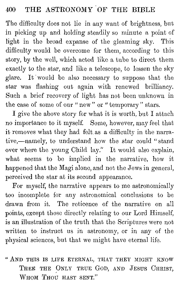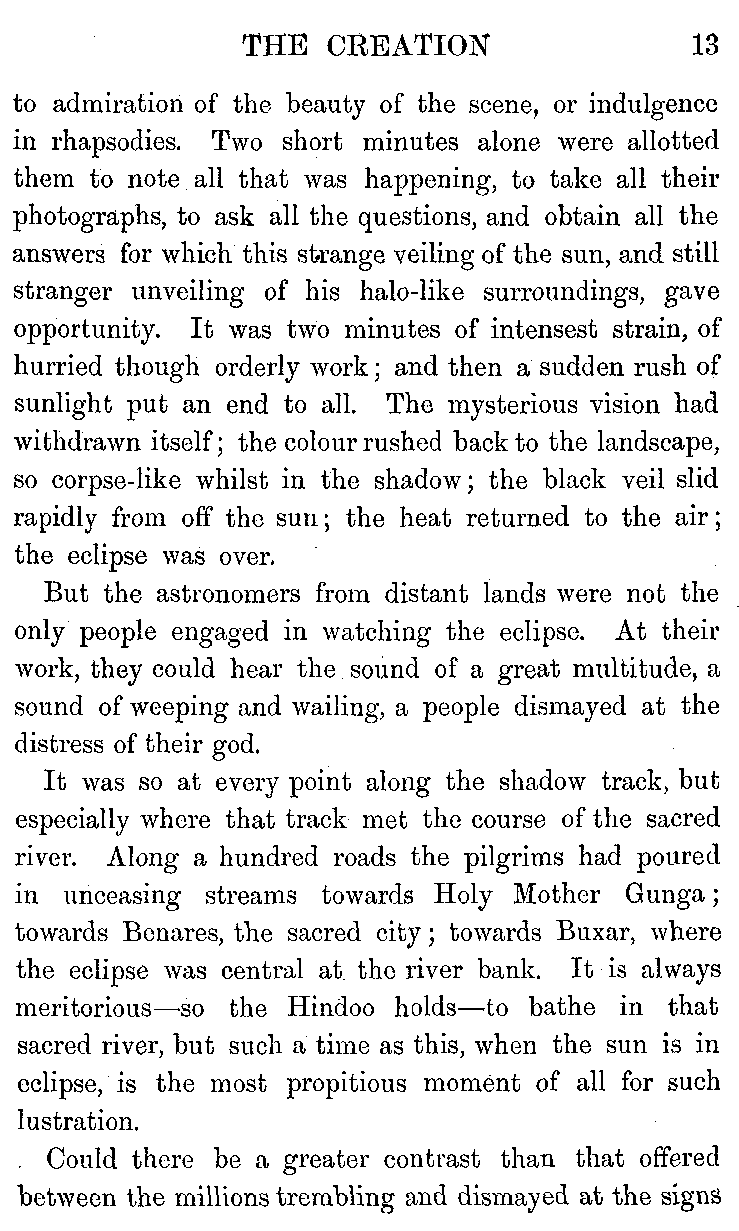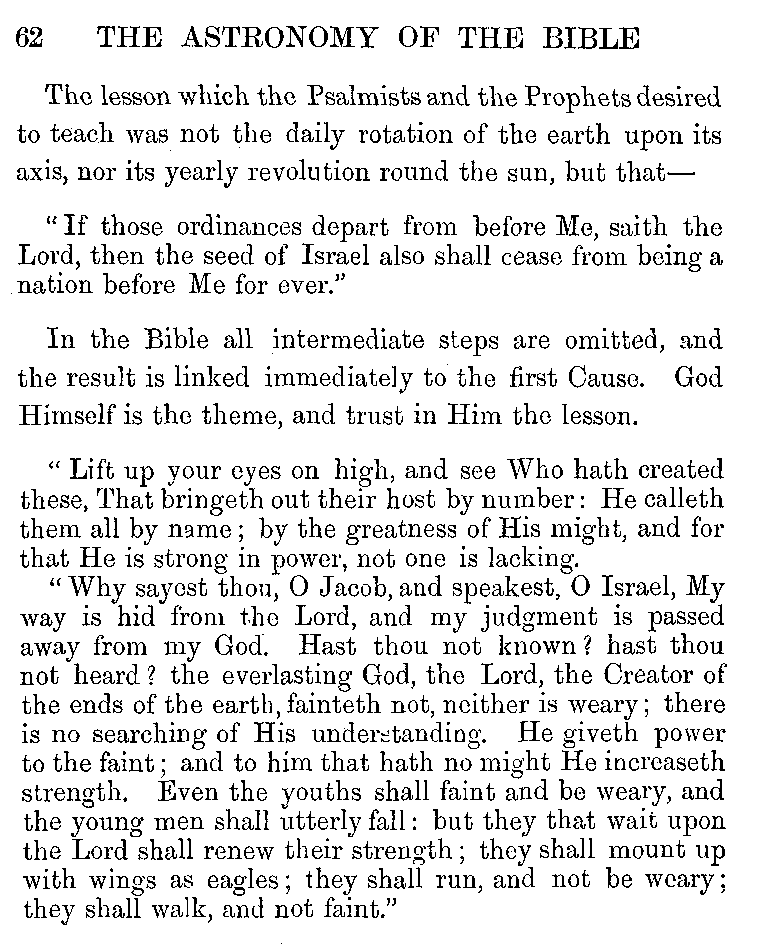 It is worth while for us so to do. For the immense advances in science, made since the Canon of Holy Scripture was closed, and especially during the last three hundred years, may enable us to realize the significance of a most remarkable fact. Even in those early ages, [viii]when to all the nations surrounding Israel the heavenly bodies were objects for divination or idolatry, the attitude of the sacred writers toward them was perfect in its sanity and truth.