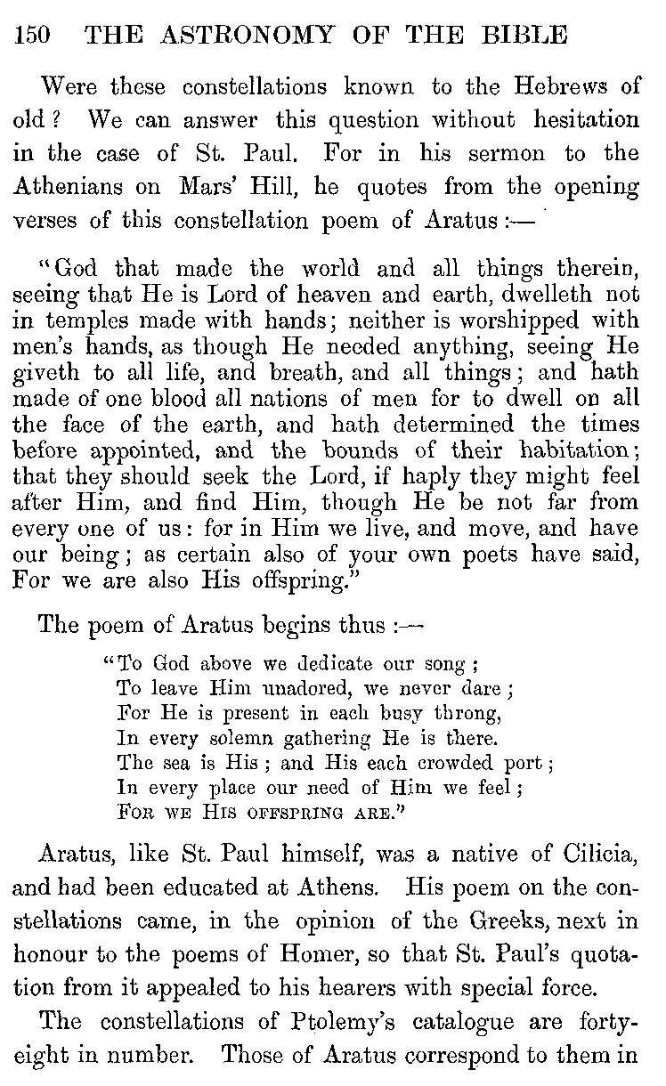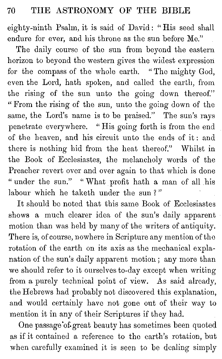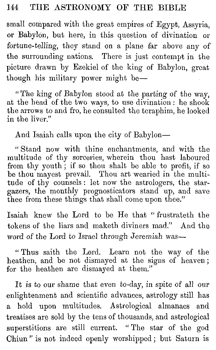 Astronomical allusions in the Bible, direct and indirect, are not few in number, and, in order to bring out their full significance, need to be treated astronomically. Astronomy further gives us the power of placing ourselves to some degree in the position of the patriarchs and prophets of old. We know that the same sun and moon, stars and planets, shine upon us as shone upon Abraham and Moses, David and Isaiah. We can, if we will, see the unchanging heavens with their eyes, and understand their attitude towards them.