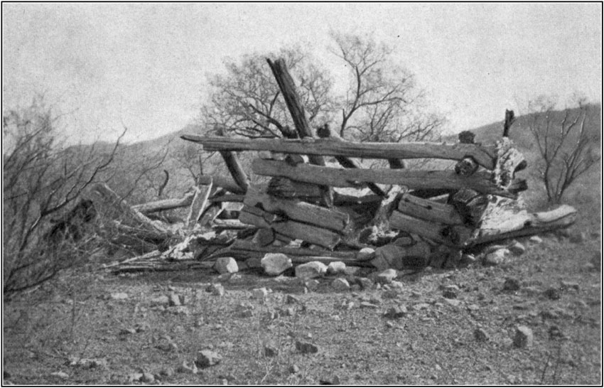 One day during the Rodeo we were out where the vaqueros were working and on our return found our home, a 'dobe house, burned down, and all our belongings with it, including considerable provisions. My loss was slight, for in those days I owned a prejudice against acquiring any more worldly goods than I could with comfort pack on [Pg 116]my back; but Frank lost a trunk containing several perfectly good suits of clothes and various other more or less valuable articles which he set great store by, besides over a hundred dollars in greenbacks. We hunted among the ruins, of course, but not a vestige of anything savable did we find.