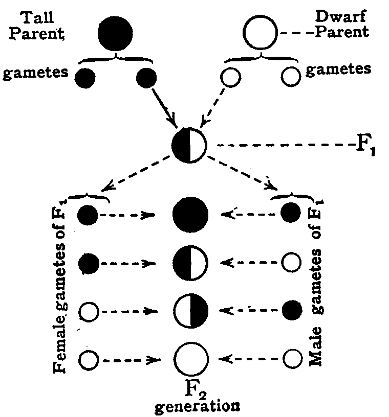 [2] It has been found convenient to denote the various generations resulting from a cross by the signs F1, F2, F3, etc. F1 on this system denotes the first filial generation, F2 the second filial generation produced by two parents belonging to the F1 generation, and so on.