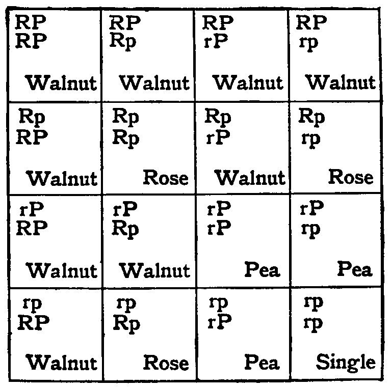 | 5. | Diagram of Inheritance of Fowls' Combs | 37 | |