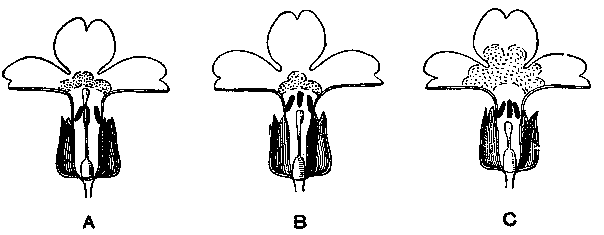 [7] It should be mentioned that as the shape of the pollen coat, like that of the seed coat, is a maternal character, all the grains of any given plant are either long or else round. The two kinds do not occur together on the same plant.