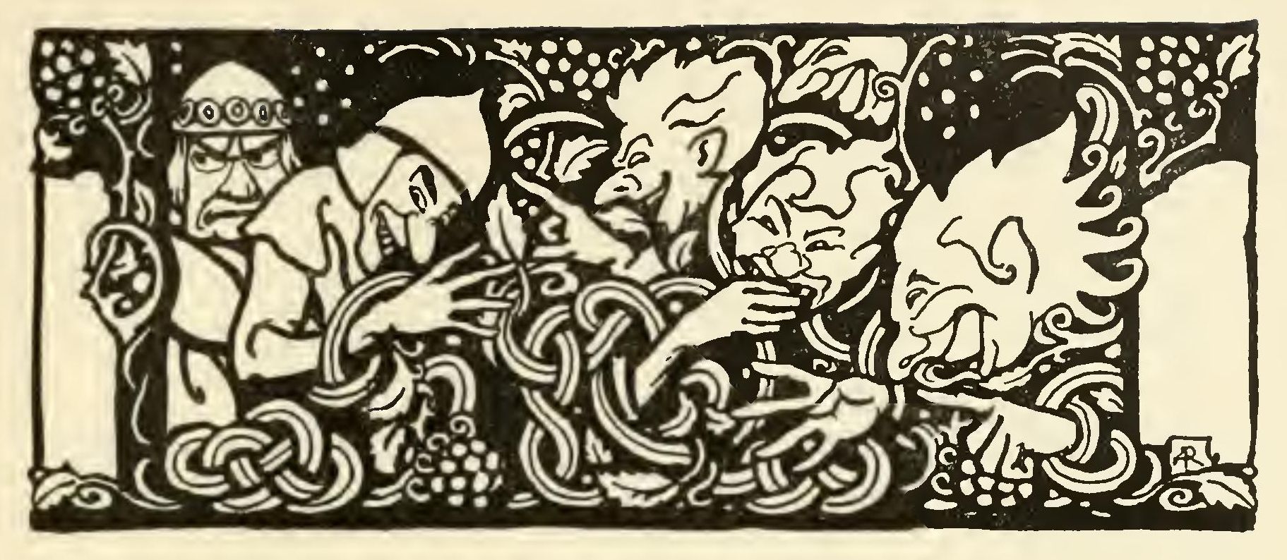 At the banquet which was then held he looked at her again, and every time he took a drink he toasted Ivell across the brim of his goblet, and in a little while she began to toast him back across the rim of her cup, for he was drinking ale, but she was drinking mead. Then he sent a messenger to her to say that it was a far better thing to be the wife of the King of Leinster than to be the wife of the son of the King of Connaught, for a king is better than a prince, and Ivell thought that this was as wise a thing as anybody had ever said. And then he sent a message to say that he loved her so much that he would certainly burst of love if it did not stop.