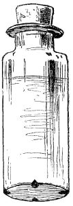 Procure a small vial of thin glass; such as homœopathic medicines come in are best. In the bottom of this file with a fine file four holes, as represented in our cut; then fill it with water, and hand it to a friend, requesting him to smell it. As soon as he removes the cork, the water will pour out of the holes at the bottom.