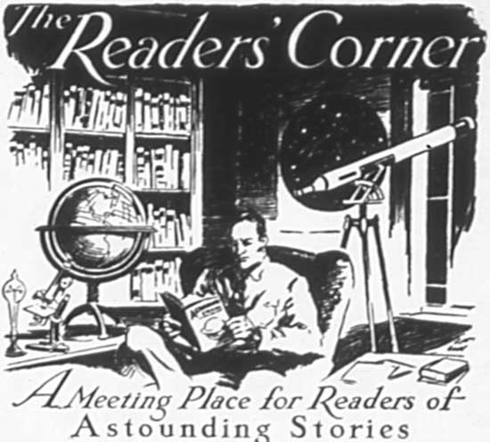 All Readers are extended a sincere and cordial invitation to "come over in 'The Readers' Corner'" and join in our monthly discussion of stories, authors, scientific principles and possibilities—everything that's of common interest in connection with our Astounding Stories.