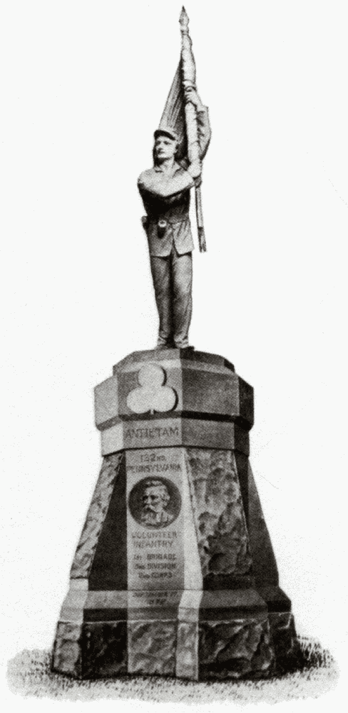 MONUMENT OF 132D REGIMENT, P. V.It stands about two hundred yards directly in front of the battle line upon which this regiment fought, on the side of the famous "Sunken Road" occupied by the Confederates.