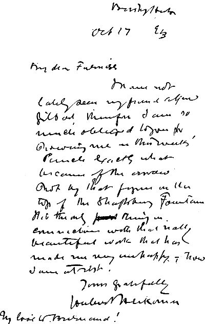 On the other hand, the caricature of an important work is sometimes received in the proper spirit. Here is a letter from Professor Herkomer, with reference to my caricature of the work of our greatest art genius, Alfred Gilbert, R.A.: