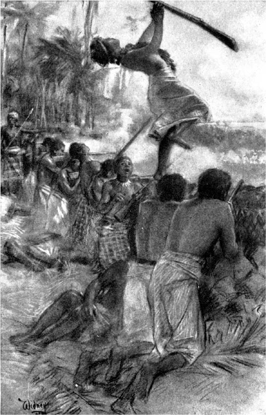 At this Evanitalina sobbed, and clung pitifully to O'olo, and pressed his head to her bosom, unmindful of decorum, and so consumed by misery she was like a person in a fit. O'olo, too, was suffocated with sadness, for it seemed a dreadful thing to die and be cast blood-stained into a pit, he that was so handsome, and in the flood of his youth, with perhaps his dissevered head tossing in the air amid shouts and triumph. Indeed, so lost was he in wretchedness that he was taken unawares by Samuelu on his way inland from a deacons' meeting, who, convulsed, seized a coconut branch, and ran at him, crying: "Let there be a going, thou worthless one! Fly, thou of the Belial family, and be quick with it, else I shall whip thee hence like a cur!" [Pg 328]And with that he whipped and whipped at O'olo, departing, for the Tongan was too mannerly to strike a clergyman, and one so greatly his senior, though his spirit smarted worse than his body at the insult. Thus he passed from the sight of Evanitalina, like a horse being chased from a bread-fruit plantation, with no time to look back, or wave with his hand a last greeting.