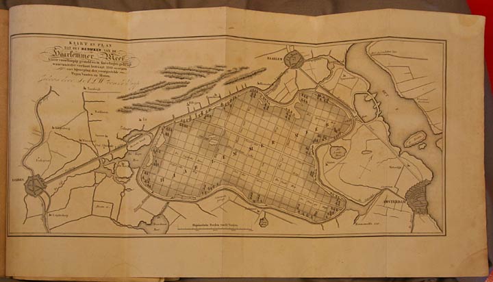Meermalen heeft men dan ook, uit besef der onberekenbare gevolgen, die dat ontzettend water voor Holland zou kunnen hebben, en bij het denkbeeld, hoe vele morgen goeden, bruikbaren gronds door de golven bedekt zijn, het plan beraamd om het Meer te bedijken, en, even als zulks zoo vele andere meren zijn gedaan, droog te malen. Niet slechts geldelijk belang, maar ook het afweren van een te vreezen onheil, was het doel dier ontwerpen. Nu eens werd zoodanig een plan door bijzondere personen, dan weder, gelijk bij voorbeeld in 17424 en 1808, op openbaar gezag [8]beraamd. Maar die plannen bleven alle zonder gevolg. In het begin van 1819 leverden de Heeren F. G. Baron van Lijnden van Hemmen, W. F. Baron Roëll en O. Repelaer van Driel, de beide laatste door den eersten hiertoe opgewekt, aan Z. M. een verzoekschrift in, ten einde octrooi te erlangen, om, volgens een nader over te geven plan, het Haarlemmer Meer te doen droogmaken en verlof te bekomen, om deze onderneming bij wijze van associatie ten uitvoer te brengen, als eene private en particuliere zaak, zonder dat het Gouvernement met subsidiën, voorschotten of garantie zou worden bezwaard.