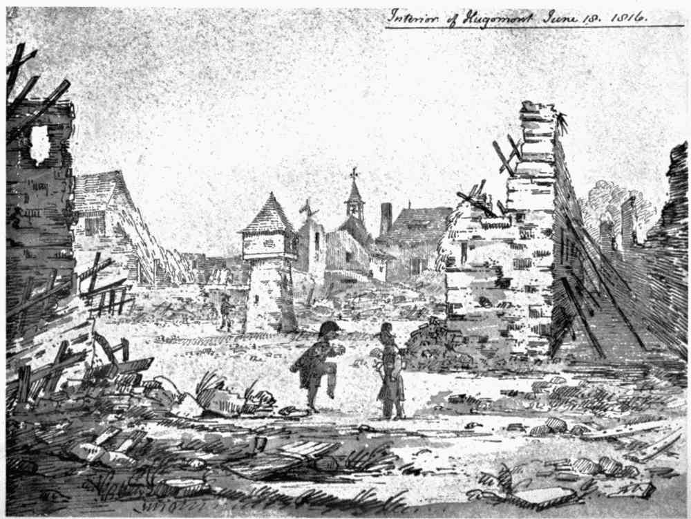 [112] A farm occupied by the King's German Legion under Major Baring; after a gallant resistance captured by the French at 4 o'clock on June 18th.