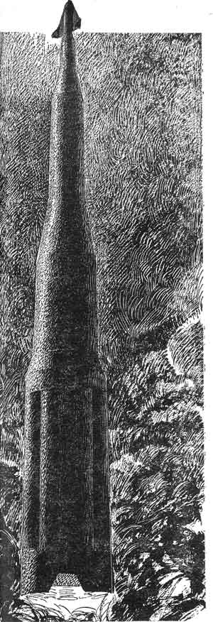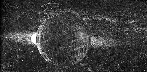 This called for the second rocket canister, which I hooked on to the girdle and, after thinking it out carefully, got headed in the right direction. I eased away with finger pressure, and let the delayed fuse do the firing. Telstar started her slow spin again.