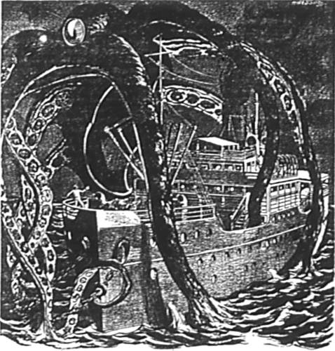 | The Trail of Mystery Gold Leads Carnes and Dr. Bird to a Tremendous Monster of the Deep. | ||