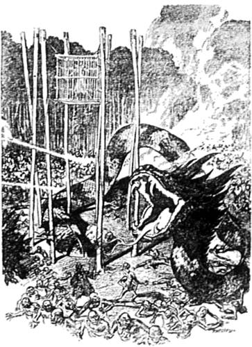 With Gori leading them they ran, stumbling, recovering themselves, stumbling again. To breathe became an agony. But not until many minutes later, when they plowed into the cover of a fern belt whose blackness not even the moonlight had pierced, did Kirby call a halt.