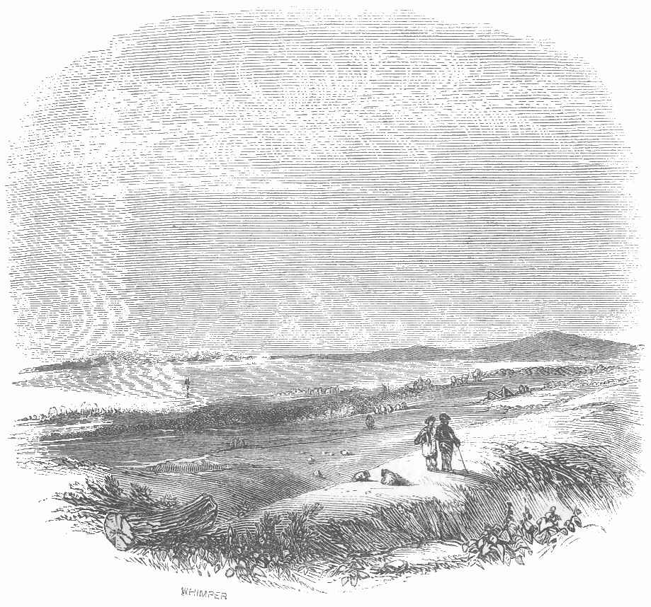 “Above us not a single cloud appeared to disfigure p. 32the clear blue sky, in which the sun on one side, and the moon in her first quarter on the other, reigned in undisturbed tranquillity. Beneath us, in every direction, as far as the eye could trace, and doubtless much further, the whole plane of vision was one extended ocean of foam, broken into a thousand fantastic forms; here swelling into mountains, there sinking into lengthened fosses, or exhibiting the appearance of vast whirlpools; with such a perfect mimicry of the real forms of nature, that, were it not for a previous acquaintance with the general character of the country below us, we should frequently have been tempted to assert, without hesitation, the existence of mountainous islands penetrating through the clouds, and stretching in protracted ranges along the distant verge of our horizon.