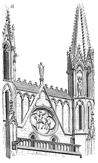 Si l'on prend la peine d'appliquer cette méthode de l'emploi des triangles, comme moyen de mettre les édifices en proportion, à tous les monuments du moyen âge ayant quelque valeur, on trouvera toujours qu'on a procédé par des tracés logiques, établissant des rapports harmonieux par des sections de lignes parallèles aux côtés de ces triangles, et marquant, pour l'oeil, des points de repère qui rappellent ces lignes inclinées soit à 45º, soit à 60º, soit à 52º.
