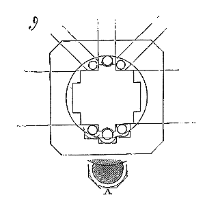 Voici (fig. 6) un joli puits, encore entier, dans une cour d'une maison, de la petite ville de Montréal (Yonne). La margelle, octogonale à l'extérieur, est circulaire à l'intérieur. Deux piles tenant à deux des côtés de l'octogone (voy. le plan) portent un linteau de pierre auquel la poulie est suspendue. Sur l'une de ces piles on voit un écusson orlé, chargé d'un écureuil (voy. le détail A), et au-dessous, un petit cartouche sur lequel est gravée l'inscription suivante: Jehan de Brie m'a fait faire en l'an 1526. N'était cette inscription, on pourrait assigner à ce puits une date beaucoup plus ancienne, car il a tous les caractères du commencement du XVe siècle (voy. les profils B).