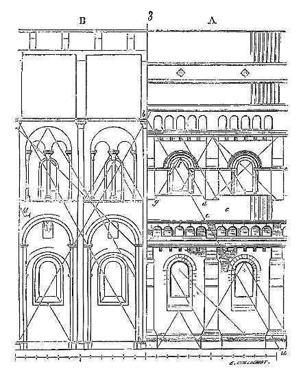 La sainte Chapelle de Paris se compose de deux étages: la chapelle basse et la chapelle haute 372. Voici (fig. 4) comment Pierre de Montereau, l'architecte de ce monument, a procédé pour établir ses plans et coupes: