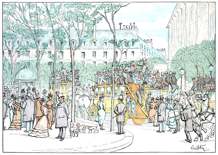 En voyant les proportions inusitées de ces véhicules, on comprend facilement qu'ils puissent contenir un nombre considérable de voyageurs; ce qu'on conçoit moins aisément, c'est que, si bondés soient-ils, il reste pendant tout le parcours deux places à la disposition des amateurs.