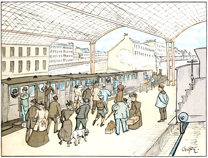 Chacun, après une laborieuse journée, a hâte de trouver la fraîcheur d'un jardin plus ou moins vaste, mais où l'on a la liberté de se mettre en bras de chemise.—C'est l'heure où les comestibles supplémentaires abondent dans les filets des wagons, et où les melons combinent leurs parfums avec ceux du marolles et les émanations des cigares chers ou bon marché, mais également nauséabonds, de nos manufactures nationales.