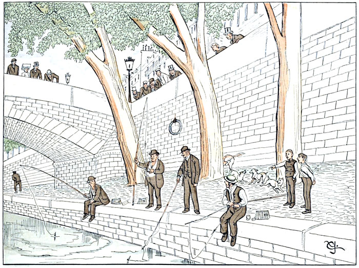 Le cas se présente quelquefois que l'un d'entre eux prend un poisson,—petit généralement;—la physionomie des collègues exprime immédiatement toutes les nuances de l'étonnement bien plus que les symptômes de la jalousie,—ce qui tendrait à prouver qu'aucune illusion ne les soutient pendant leurs longues stations, et que, bien loin de convoiter des fritures imaginaires, ils savent à quoi s'en tenir sur les résultats probables de leur platonique passion.
