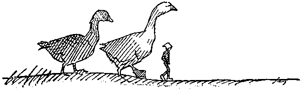 Die Gänse sammelten sich in einen Haufen, steckten die Köpfe zusammen und fragten: „Wer hat das getan? Wer hat das getan?“