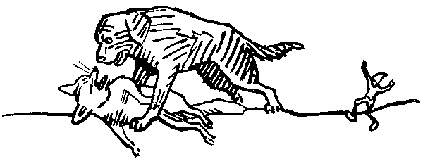 In demselben Augenblick aber war diese so verändert, daß der Junge sie kaum noch für dasselbe Tier halten konnte. Sie hatte den Rücken gekrümmt – die Beine waren länger geworden, sie kratzte sich mit den Krallen im Nacken, der Schwanz war kurz und dick, die Ohren legten sich zurück, das Maul fauchte, und die Augen standen weit offen und funkelten in roter Glut.