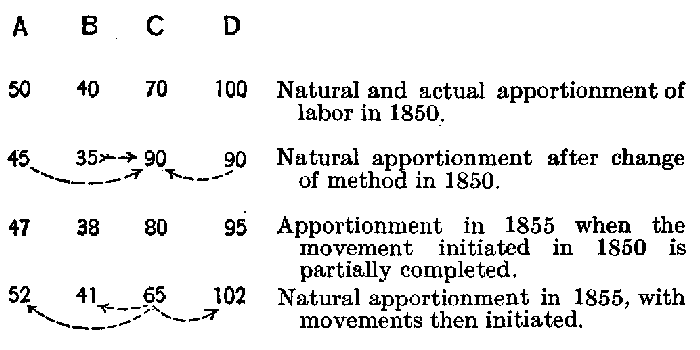 Another purpose of the work is to examine seriatim the effects of different changes, to gauge the probability of their continuance, and to determine the resultant of all of them acting together. It is important to know under what conditions changes proceed at a normal rate, and when the standard of wages rises as it naturally should. As the actual rate of wages pursues its rising standard, but lags somewhat behind it, it is necessary to know what determines the interval between the two, and when the interval is normal. What is called "economic friction" is the cause of this interval and is an element that is amenable to law.