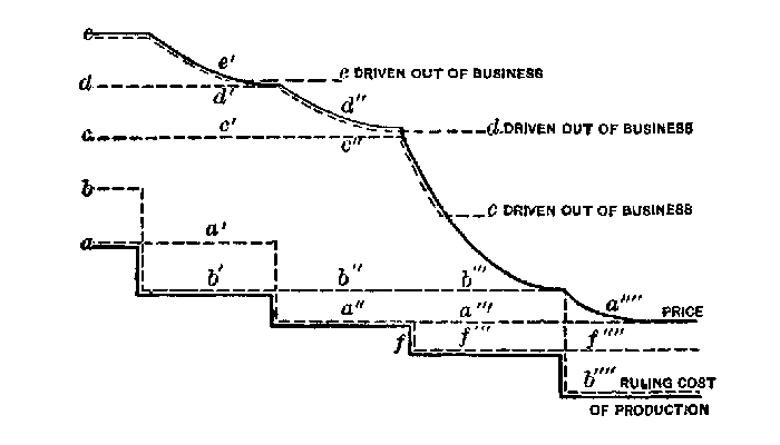 Why the Perishability of Capital Goods does not put Capital out of Existence.—Perishability is the most striking trait of capital goods. Each particular one comes and goes, but there is always a stock of them on hand; for when one is on the point of going, another is ready to take its place and keep up the succession. New tools replace old tools; new materials replace those that are finished and withdrawn, and so it comes about that a stock of such things abides forever. Not one of the individual instruments is permanent, for each one only does its part in keeping up an endless procession. It is the procession that is always there—a moving series of individual goods, not one of which has more than a transient economic career. Each one helps to keep up the supply of permanent capital just as each man, taking his turn in an endless succession of laborers, serves during his brief life to keep up the permanent force of laboring humanity. Men come and go, but "labor"—a mass of working humanity—abides; and so capital goods come and go, but a stock of them abides, kept up by perpetual replacement. We may trace the career of any single instrument from a beginning to an end; but we may, on the other hand, cease to look at any instruments that we single out and identify and look rather at the procession of them; and if we do this, we look at a body which never wastes away, though the things that compose it are, separately considered, forever wasting.