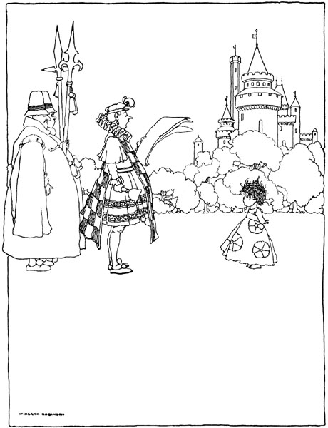 Rosette thanked them for the trouble they were taking, and promised to govern the kingdom well. She declared that while they were away her only pleasures would be to admire the beautiful peacock and make Frillikin dance. Their adieux were said with many tears.