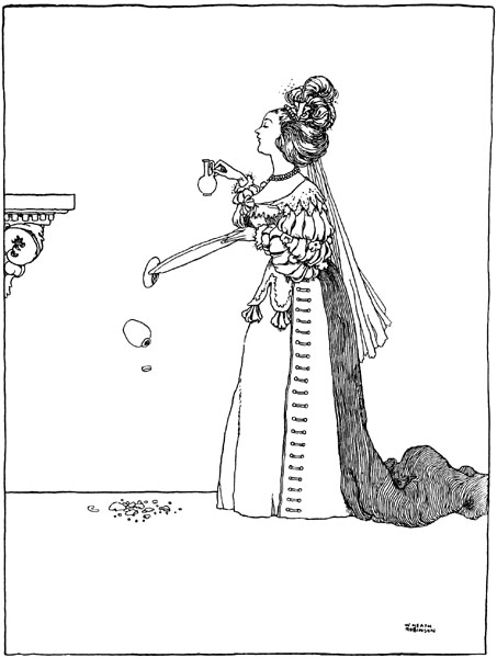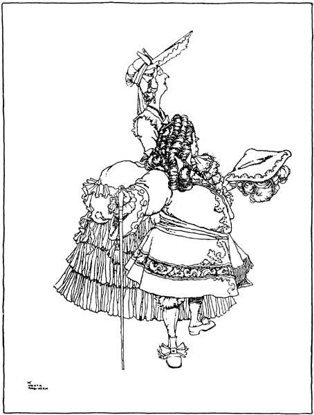 [p. 200] Finally, the King of the Peacocks made all amends in his power to the royal brothers, expressing his deep regret at having ill-treated them. The nurse delivered up to Rosette her beautiful dresses and the bushel of golden crowns, and the wedding festivities lasted for fifteen days. Every one was happy, not excepting Frillikin, who ate nothing but partridge wings for the rest of his life.