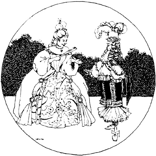 They passed into an apartment hung with mirrors, and were there served with supper by the stewards of the household, while the fiddles and oboes played some old music—and played it remarkably well, considering they had not played at all for just upon a hundred years. A little later, when supper was over, the chaplain married them in the castle chapel, and in due course, attended by the courtiers in waiting, they retired to rest.