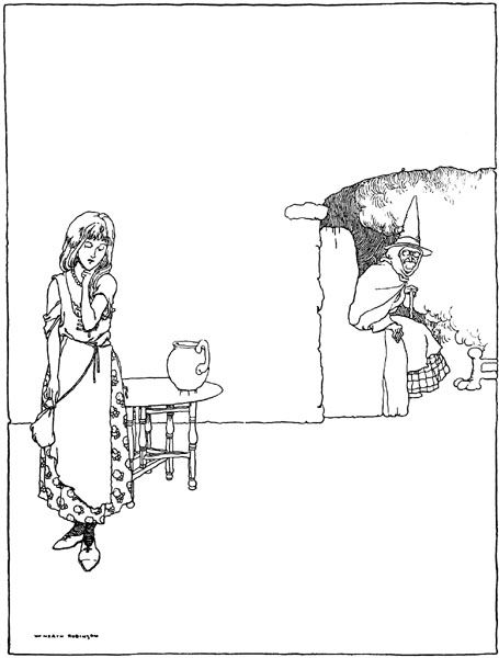 The old man handed a basket to the princess, and she hung it round Frillikin's neck with these words: 'Find the best stew-pot in the town, and bring me back whatever is inside it.' Off went Frillikin to the town, and as he [p. 197] could think of no better stew-pot than the king's, he made his way into the royal kitchen. Having found the stew-pot, he cleverly extricated its contents and returned to the house.
