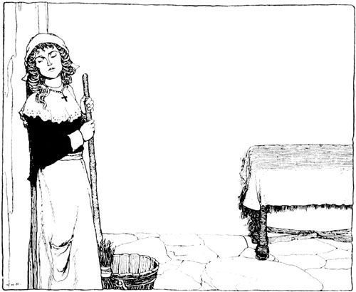 [p. 15] Now the whole palace had awakened with the princess. Every one went about his business, and since they were not all in love they presently began to feel mortally hungry. The lady-in-waiting, who was suffering like the rest, at length lost patience, and in a loud voice called out to the princess that supper was served.