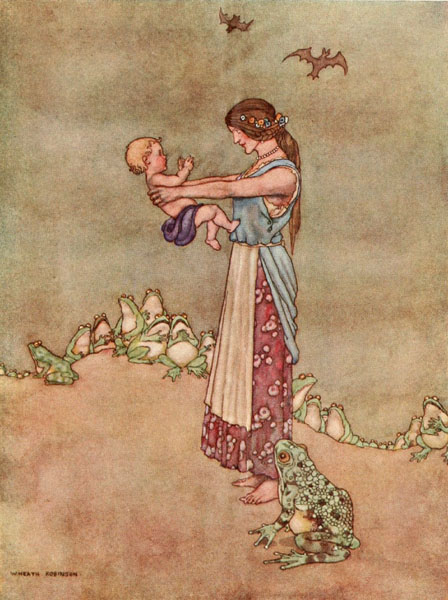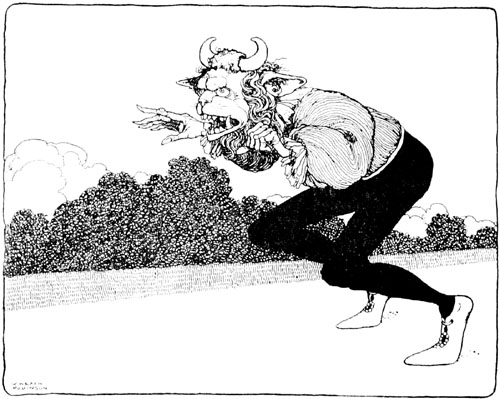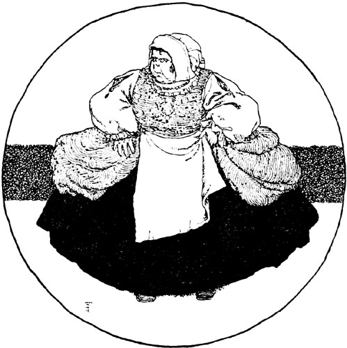 There they were, and her minions were making ready to cast them into the vat, when into the courtyard rode the king! Nobody had expected him so soon, but he had travelled post-haste. Filled with amazement, he demanded to know what this horrible spectacle meant. None dared [p. 20] tell him, and at that moment the ogress, enraged at what confronted her, threw herself head foremost into the vat, and was devoured on the instant by the hideous creatures she had placed in it.