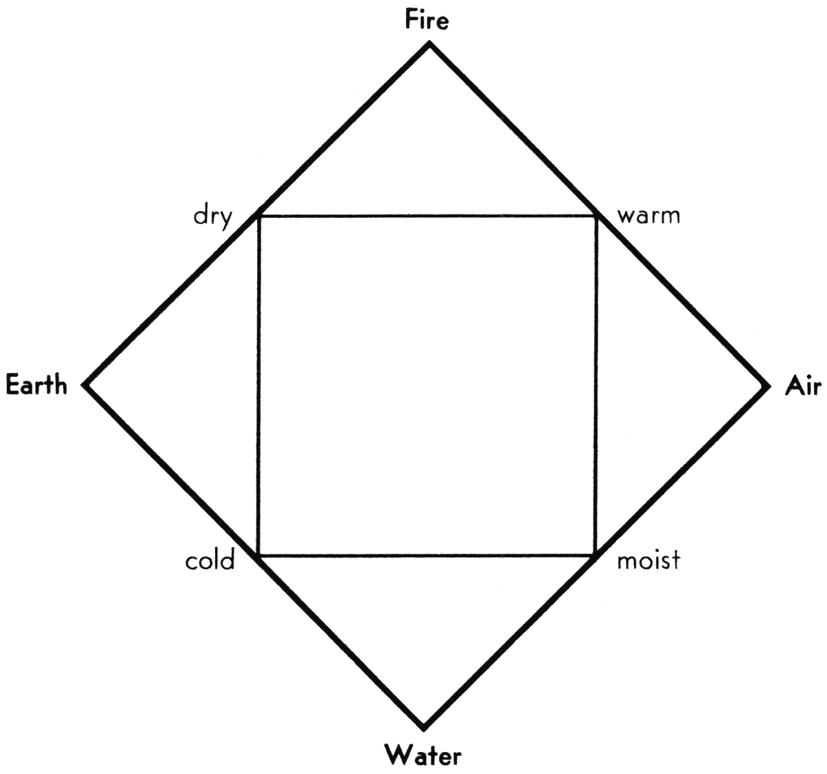 The early Greeks suggested earth, air, fire, and water as being the essential material from which all others were made. Aristotle considered these as being combinations of four properties: hot, cold, dry, and moist (see Fig. 1).