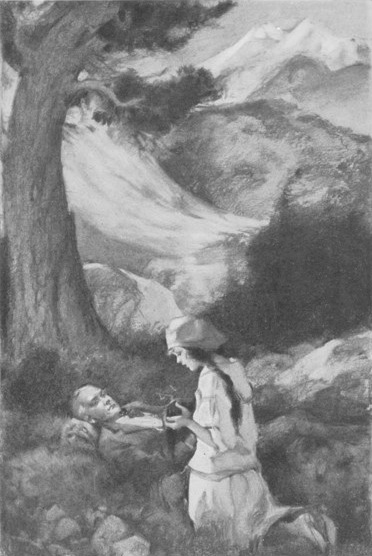 Then suddenly remembering that it was he who was making the Thunder Bird’s fortune, as impulsively as the little cedar tree leaned to the swollen rill, she bent and kissed the cold sweat of pain from his forehead.