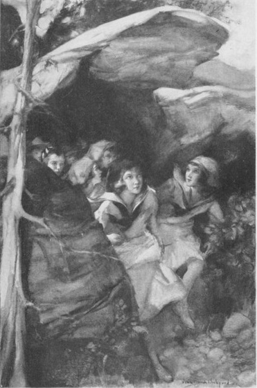 “A fire! I–I a Camp Fire Girl–and not to think of it sooner! Una! Una! Get busy! Gather wood, quickly–quickly–all-ll the dry wood you can!”
