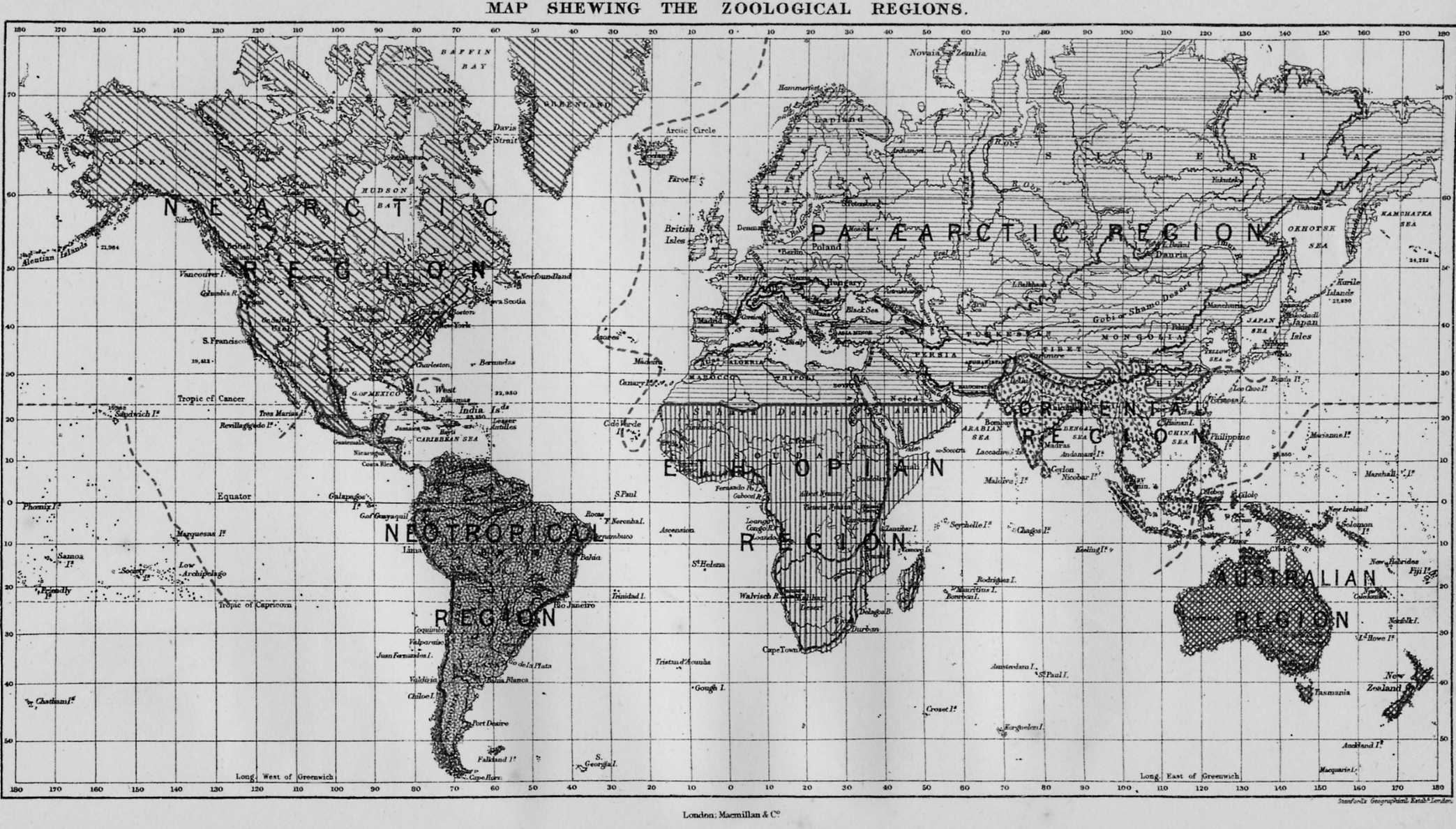 The Geographical Divisions of the Globe do not Correspond to Zoological Divisions—The Range of British Mammals as Indicating a Zoological Region—Range of East Asian and North African Mammals—The Range of British Birds—Range of East Asian Birds—The Limits of the Palæarctic Region—Characteristic Features of the Palæarctic Region—Definition and Characteristic Groups of the Ethiopian Region—Of the Oriental Region—Of the Australian Region—Of the Nearctic Region—Of the Neotropical Region—Comparison of Zoological Regions with the Geographical Divisions of the Globe