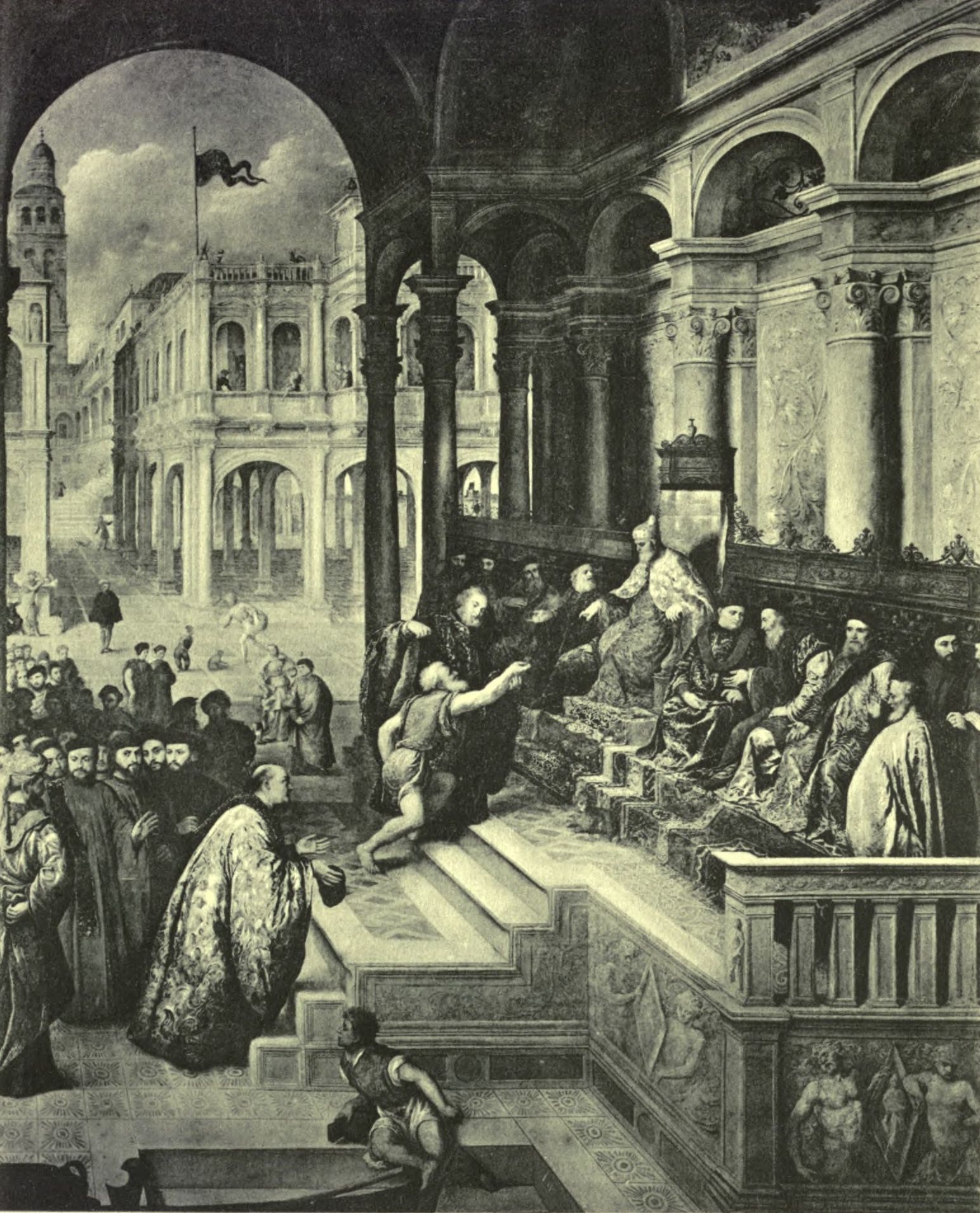 Sansovino was much esteemed by Princes, among whom Alessandro de' Medici, Duke of Florence, sought his judgment in building the Citadel of that city. And Duke Cosimo in the year 1540, Sansovino having gone on his affairs to his native city, not only sought his counsel in the matter of that fortress, but also strove to engage him in his service, offering him a good salary; and on his return from Florence Duke Ercole of Ferrara detained him about his person and proposed various conditions to him, making every effort to keep him in Ferrara. But he, being used [Pg 224] to Venice, and finding himself comfortable in that city, where he had lived a great part of his life, and having a singular love for the Procurators, by whom he was so much honoured, would never listen to any of them. He was also invited by Pope Paul III, who wished to advance him to the charge of S. Pietro in the place of Antonio da San Gallo, and with this Monsignor della Casa, who was then Legate in Venice, occupied himself much; but all was in vain, because he said that he was not minded to exchange the manner of life of a republic for that of living under an absolute Prince. And King Philip of Spain, on his way to Germany, showed him much kindness at Peschiera, whither Jacopo had gone to see him.