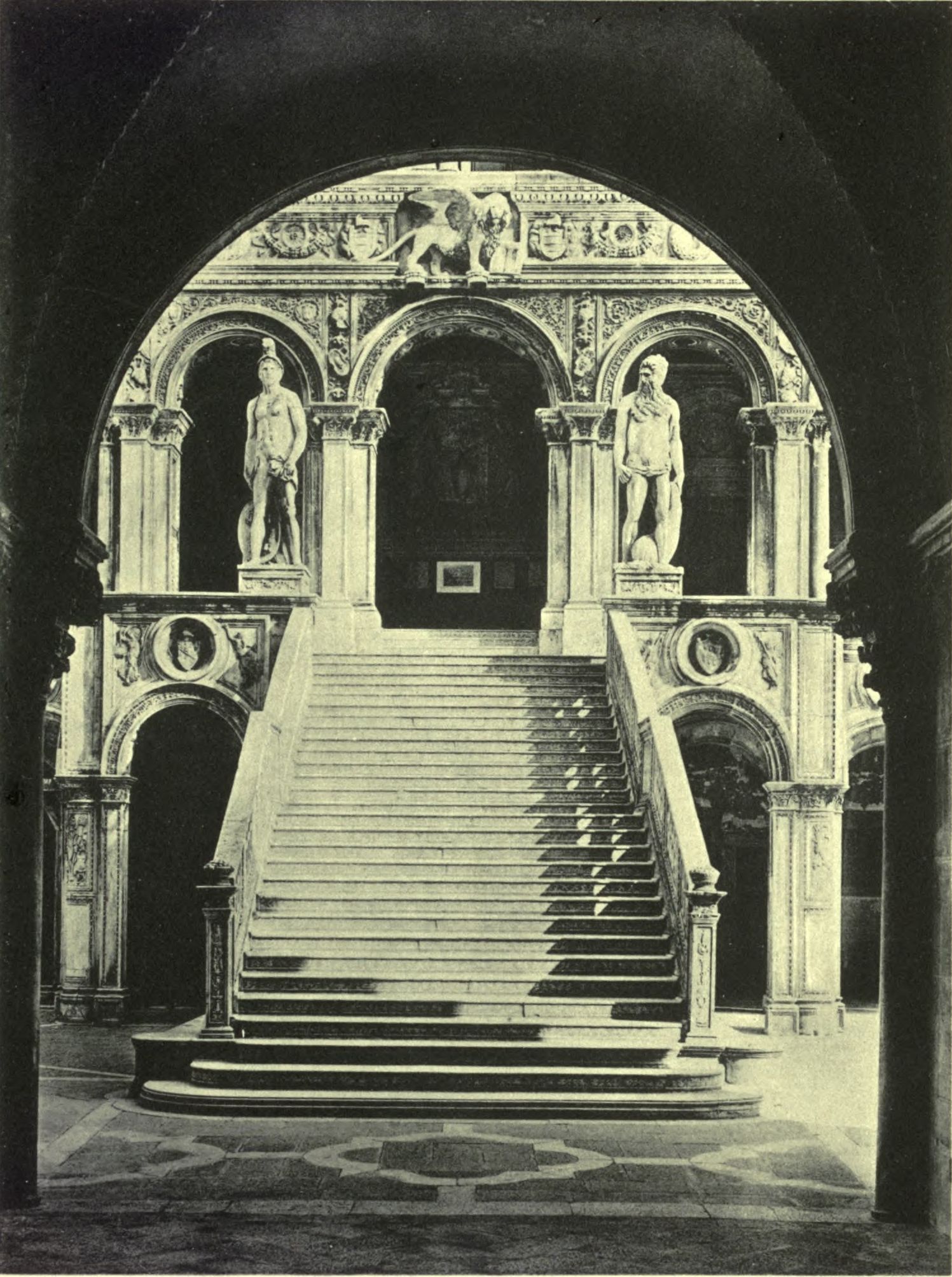 Nor for all this, while he has given his attention to so many buildings, has he ever ceased to occupy himself every day for his own delight with vast and beautiful works of sculpture, in marble and in bronze. Over the holy-water font of the Friars of the Cà Grande there is by his hand a statue made of marble, representing S. John the Baptist, which is [Pg 220] very beautiful and highly extolled. At Padua, in the Chapel of the Santo, there is a large scene in marble by the same hand, with very beautiful figures in half-relief, of a miracle of S. Anthony of Padua; which is much esteemed in that place. For the entrance of the stairs of the Palace of S. Marco he is even now executing in marble in the forms of two very beautiful giants, each of seven braccia, a Neptune and a Mars, signifying the power which that most illustrious Republic has on land and sea. He made a most beautiful statue of Hercules for the Duke of Ferrara; and for the Church of S. Marco he made six scenes of bronze in half-relief, one braccio high and one and a half long, for placing on a pulpit, with stories of that Evangelist, which are held in much estimation for their variety. Over the door of the same S. Marco he made a Madonna of marble, the size of life, which is held to be a very beautiful thing; and at the entrance to the sacristy of that place there is by his hand the door of bronze divided into two most beautiful parts, with stories of Jesus Christ all in half-relief and wrought excellently well. And over the door of the Arsenal he made a very beautiful Madonna, who is holding her Son in her arms, of marble. All which works not only have given lustre and adornment to that Republic, but also have caused Sansovino to be better known every day as a most excellent craftsman, and loved and honoured by the magnificent liberality of those Signori, and likewise by the other craftsmen, every work of sculpture and architecture that has been executed in that city in his time being referred to him. And in truth the excellence of Jacopo has well deserved that he should be held in the first rank among the craftsmen of design in that city, and that his talents should be loved and revered by all without exception, both nobles and plebeians, for the reason that, besides other things, as has been told, with his judgment and knowledge he has brought it about that the city has been made almost entirely new and has learned the true and good method of building.
