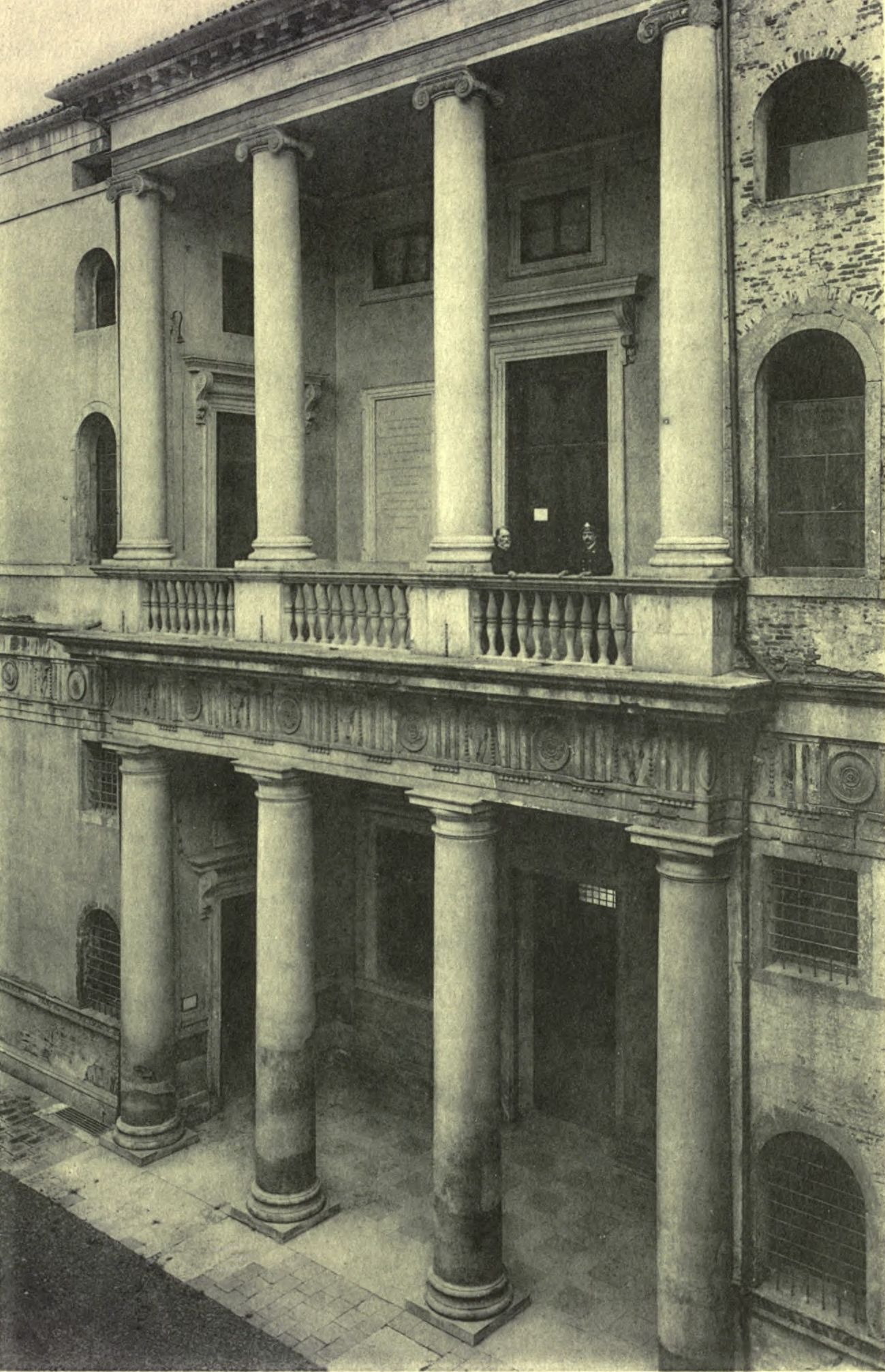 Vicenza, then, has likewise had at various times sculptors, painters, and architects, of some of whom record was made in the Life of Vittore [Pg 211] Scarpaccia, and particularly of those who flourished in the time of Mantegna and learned to draw from him; and such were Bartolommeo Montagna, Francesco Verbo, and Giovanni Speranza, all painters, by whose hands are many pictures that are dispersed throughout Vicenza. Now in the same city there are many sculptures by the hand of one Giovanni, a carver and architect, which are passing good, although his proper profession has been to carve foliage and animals, as he still does excellently well, although he is old. In like manner, Girolamo Pironi of Vicenza has executed praiseworthy works of sculpture and painting in many places in his city. But among all the masters of Vicenza he who most deserves to be extolled is the architect Andrea Palladio, from his being a man of singular judgment and brain, as many works demonstrate that were executed by him in his native country and elsewhere, and in particular the Palazzo della Comunità, a building much renowned, with two porticoes composed in the Doric Order with very beautiful columns. The same Palladio has erected a palace, beautiful and grand beyond all belief, with an infinity of the richest ornaments, for Count Ottavio de' Vieri, and another like it for Count Giuseppe di Porto, which could not be more beautiful or magnificent, nor more worthy than it is of no matter how great a Prince; and another is being built even now for Count Valerio Chiericati under the direction of the same master, very similar in majesty and grandeur to the ancient buildings so much extolled. For the Counts of Valmorana, likewise, he has now carried almost to completion another most superb palace, which does not yield in any particular to any of those mentioned above. In the same city, upon the piazza commonly called the Isola, he has built another very magnificent fabric for Signor Valerio Chiericati; and at Pugliano, a place in the Vicentino, a most beautiful house for the Chevalier, Signor Bonifazio Pugliana. In the same territory of Vicenza, at Finale, he has erected another fabric for Messer Biagio Saraceni; and one at Bagnolo for Signor Vittore Pisani, with a large and very rich court in the Doric Order with most beautiful columns. Near Vicenza, at the township of Lisiera, he has constructed for Signor Giovan Francesco Valmorana another very rich edifice, with four towers at the corners, which make a very fine effect. At Meledo, [Pg 212] likewise, for Count Francesco Trissino and Lodovico his brother, he has begun a magnificent palace upon a hill of some eminence, with many ranges of loggie, staircases, and other appurtenances of a villa. At Campiglia, likewise in the Vicentino, he is making for Signor Mario Ropetta another similar habitation, with so many conveniences, rich apartments of rooms, loggie, staircases, and chambers dedicated to various virtues, that it will be, when once carried to completion, an abode rather for a King than for a nobleman. At Lunedo he has built another, in the manner of a villa, for Signor Girolamo de' Godi; and at Angarano another for Count Jacopo Angarano, which is truly most beautiful, although it appears a small thing to the great mind of that lord. At Quinto, also, near Vicenza, he erected not long ago another palace for Count Marc'Antonio Tiene, which has in it more of the grand and the magnificent than I could express. In short, Palladio has constructed so many vast and lovely buildings within and without Vicenza, that, even if there were no others there, they would suffice to make a very handsome city with most beautiful surroundings.