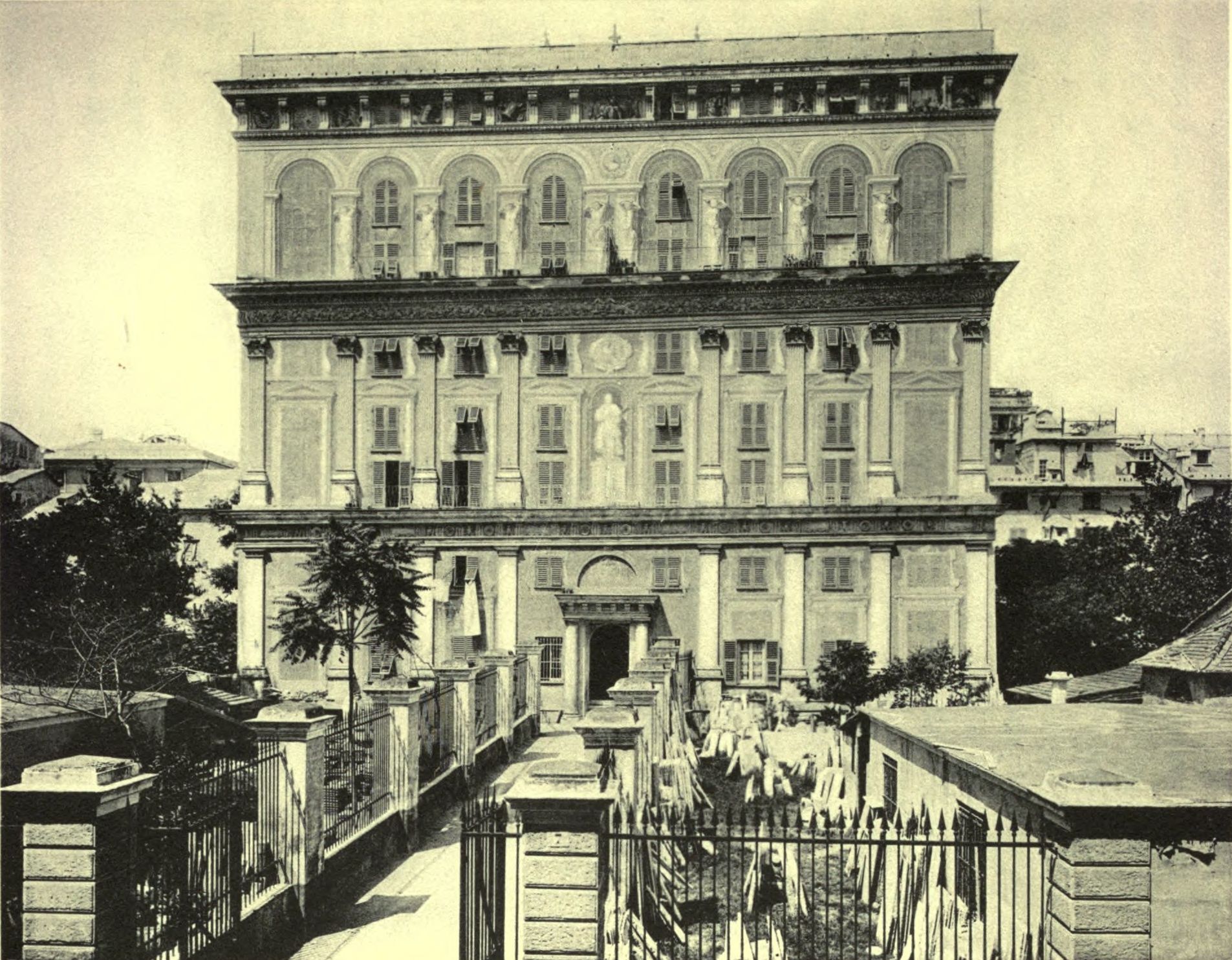 A famous and most celebrated architect, also, among others of the present day, is Galeazzo Alessi of Perugia, who, serving in his youth the Cardinal of Rimini, whose chamberlain he became, executed among his first works, at the desire of that lord, the rebuilding of the apartments in the Fortress of Perugia, with so many conveniences and such beauty, that for a place so small it was a marvel, and many times already they have accommodated the Pope with all his Court. Then, after many [Pg 240] other works that he executed for the said Cardinal, he was invited by the Genoese with much honour into the service of that Republic, for which the first work that he did was to restore and fortify the port and the mole; nay rather, to make it almost entirely different from what it was before. For, reaching out over a good space into the sea, he caused to be constructed a great and most beautiful port, which lies in a semicircle, very ornate with rustic columns and with niches about them, at the extremities of which semicircle there meet two little bastions, which defend that great port. On the piazza, then, above the mole and at the back of the great port, towards the city, he made a very large portico of the Doric Order, which accommodates the Guard, and over it, comprising all the space that it covers and likewise the two bastions and the gate, there is left a platform arranged for the operations of artillery, which commands the mole in the manner of a cavalier and defends the port both within and without. And besides this, which is finished, arrangements are being made for the enlargement of the city after his design, and his model has already been approved by the Signoria; and all with much praise for Galeazzo, who in these and other works has shown himself to be a most ingenious architect. The same Galeazzo has executed the new street of Genoa, with so many palaces built in the modern manner after his designs, that many declare that in no other city of Italy is there to be found a street more magnificent and grand than that one, nor one more full of the richest palaces, all built by those Signori with the persuasion and directions of Galeazzo, to whom all confess that they owe a very great obligation, in that he has been the inventor and executor of works which render their city, with regard to edifices, incomparably more grand and magnificent than it was before. The same master has built other streets without Genoa, and among others that which starts from Ponte Decimo on the way to Lombardy. He has restored the walls of the city towards the sea, and the fabric of the Duomo, making therein the tribune and the cupola; and he has built, also, many private edifices, such as the country palace of Messer Luca Giustiniano, that of Signor Ottaviano Grimaldi, the Palaces of two Doges, one for Signor Battista Grimaldi, and many others of which there is no need to speak.